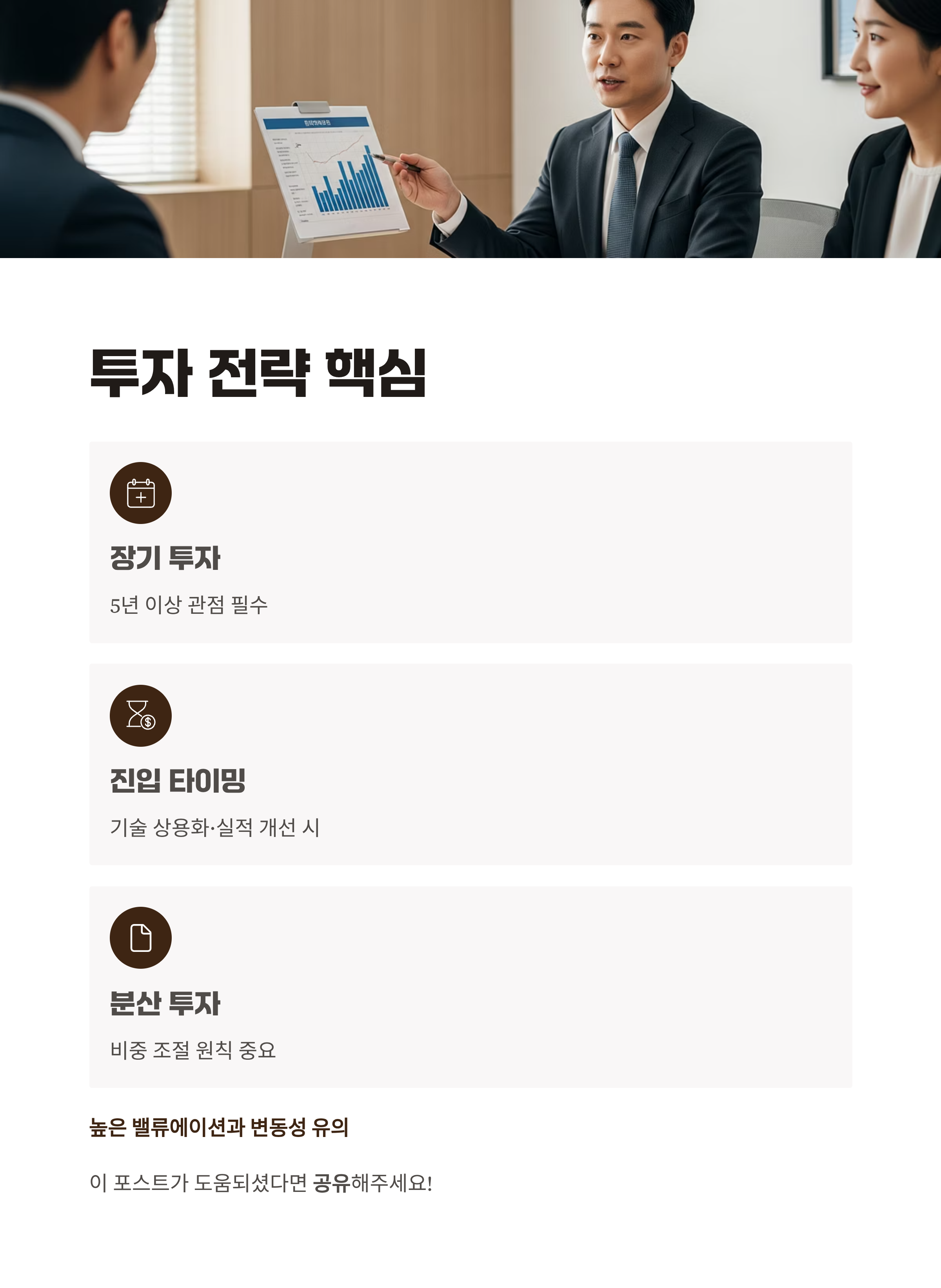 - 각 종목의 진입 타이밍은 “기술 상용화/임상 성공/실적 개선 등 트리거 발생 시”로 잡는 전략이 유효합니다.