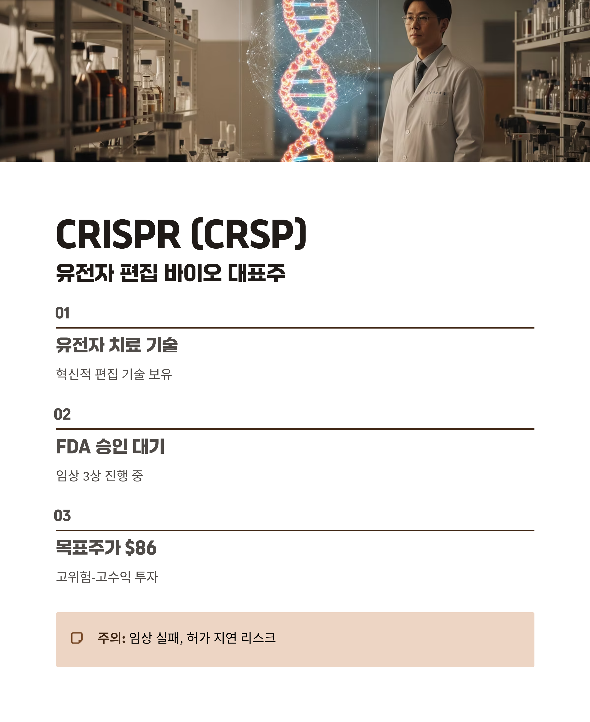 | CRSP | 유전자 치료 바이오 | $72~$86 | 임상 실패·허가 불확실성 |