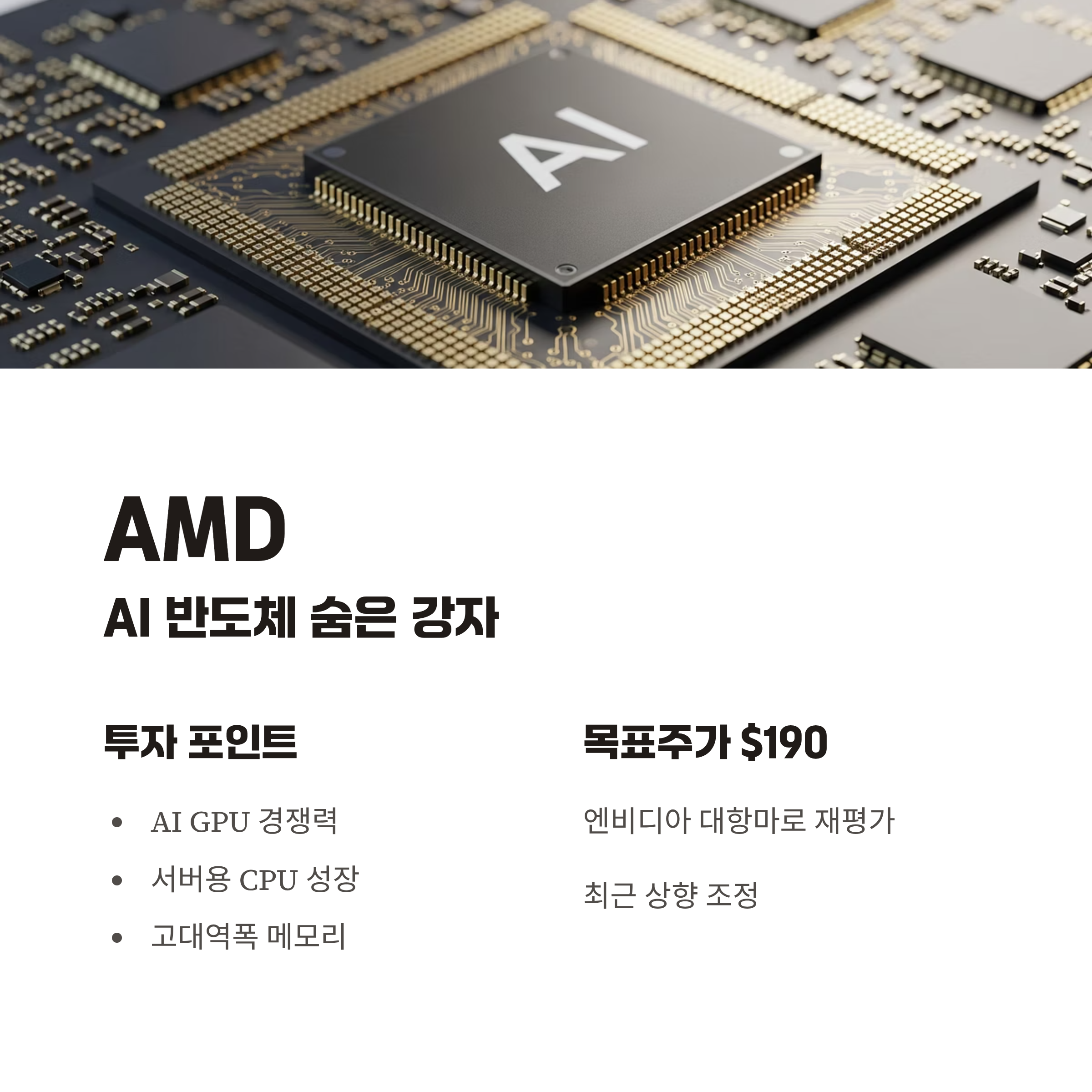 | AMD | AI 반도체 | 약 $190 | 점유율 경쟁 |