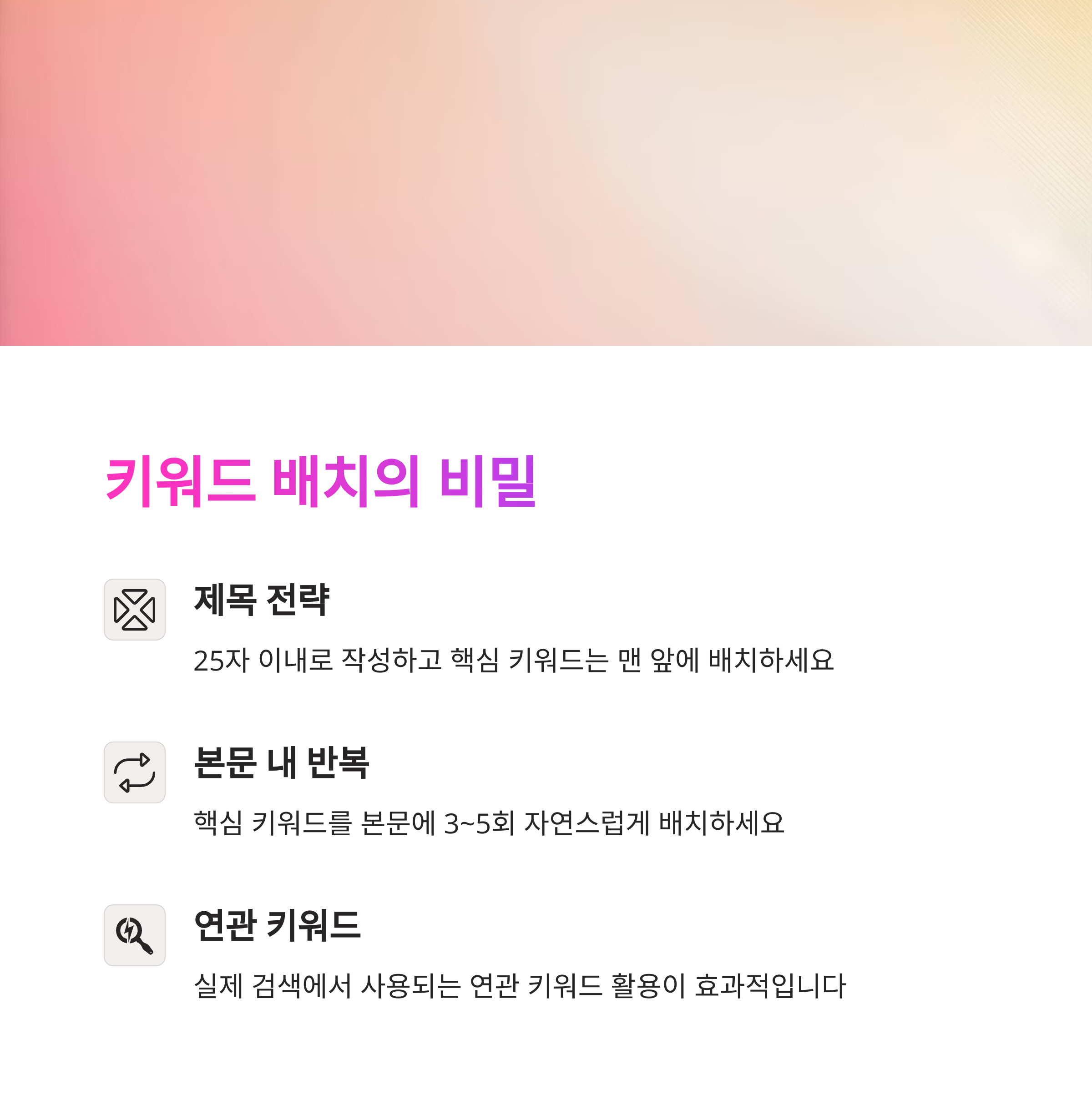 | 핵심 키워드 배치 | 가독성 디자인 | 글쓰기 루틴 |