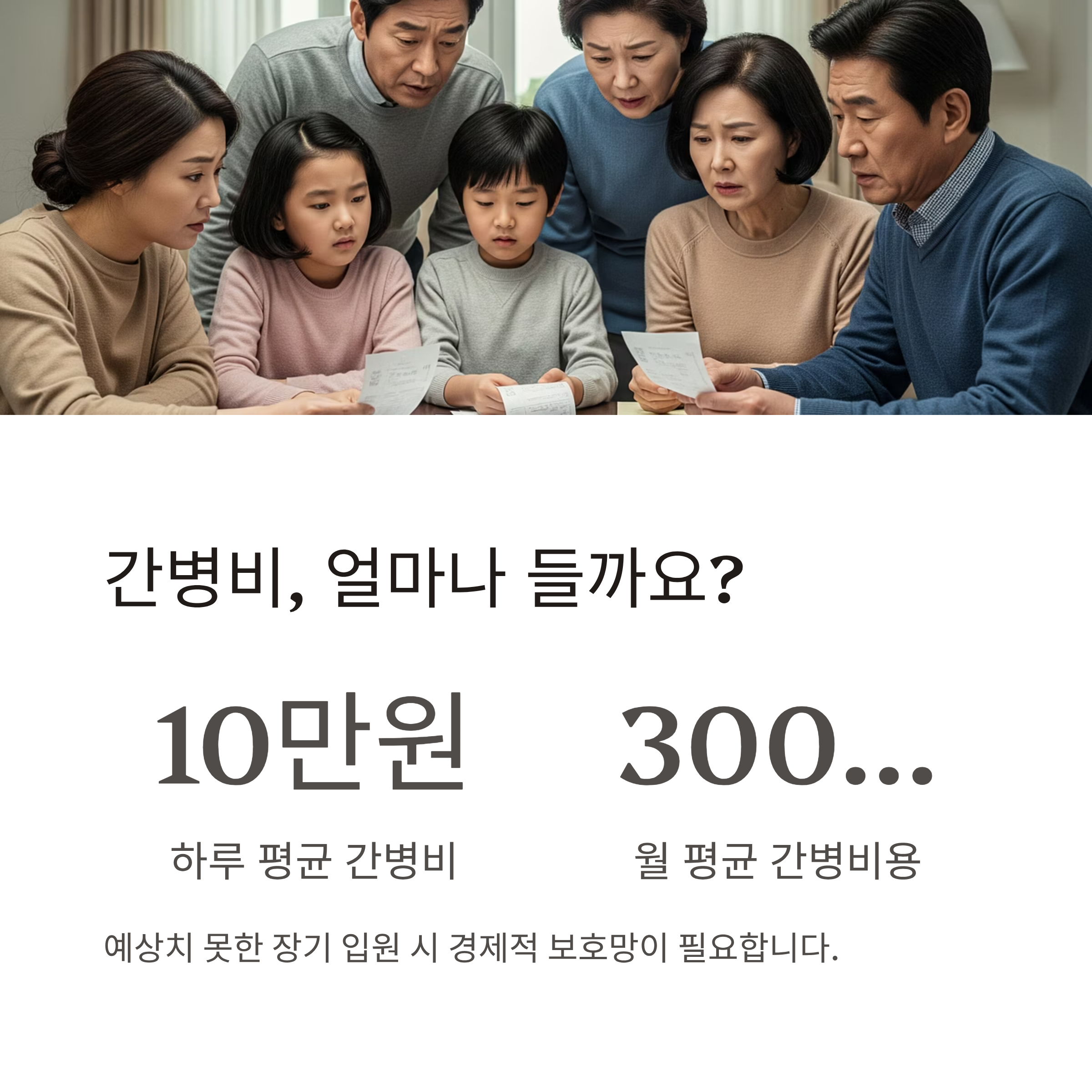 평균 간병비는 하루 10만 원 이상, 월 300~450만 원까지 나올 수 있죠.