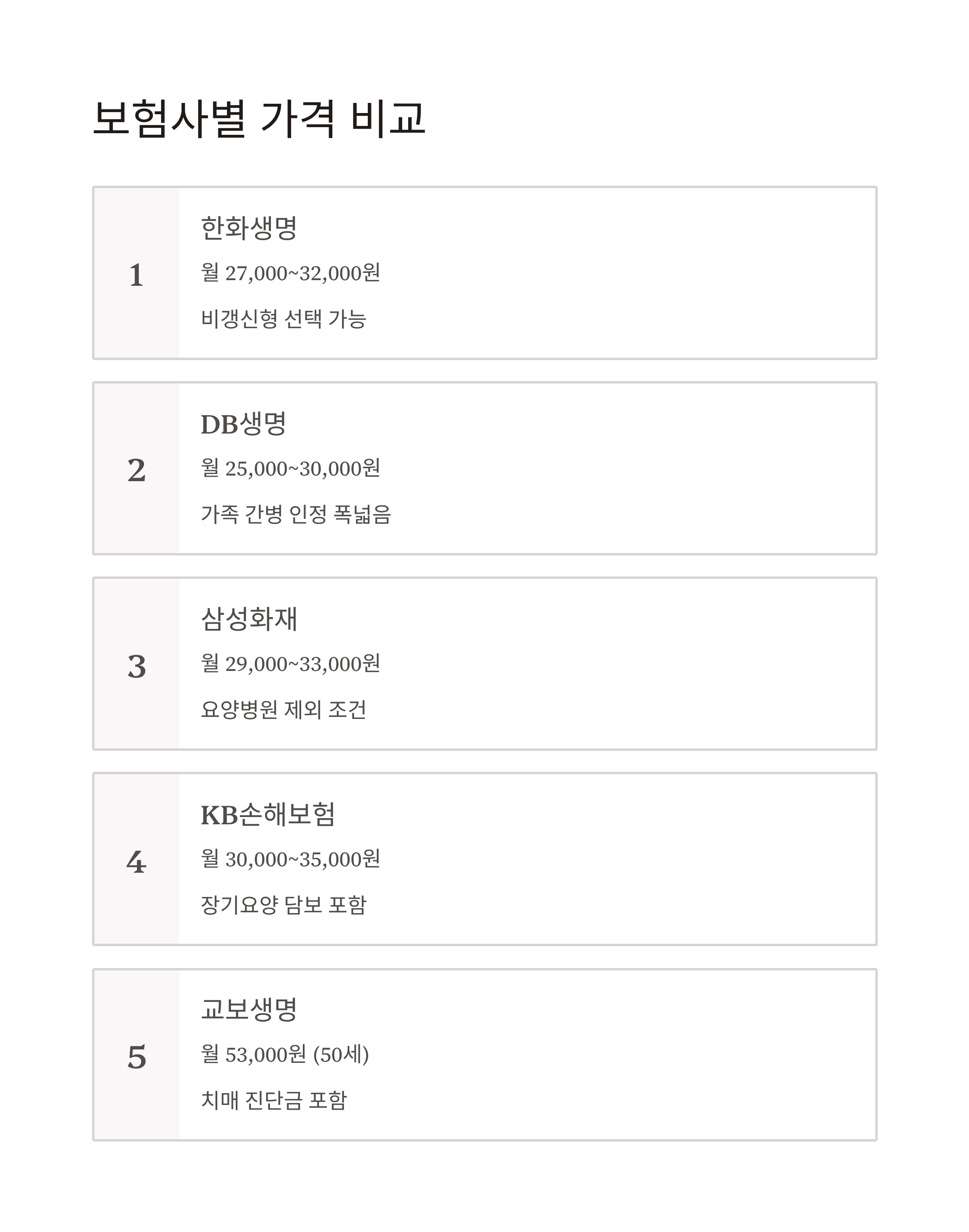 한눈에 보는 간병인 보험 TOP5 비교