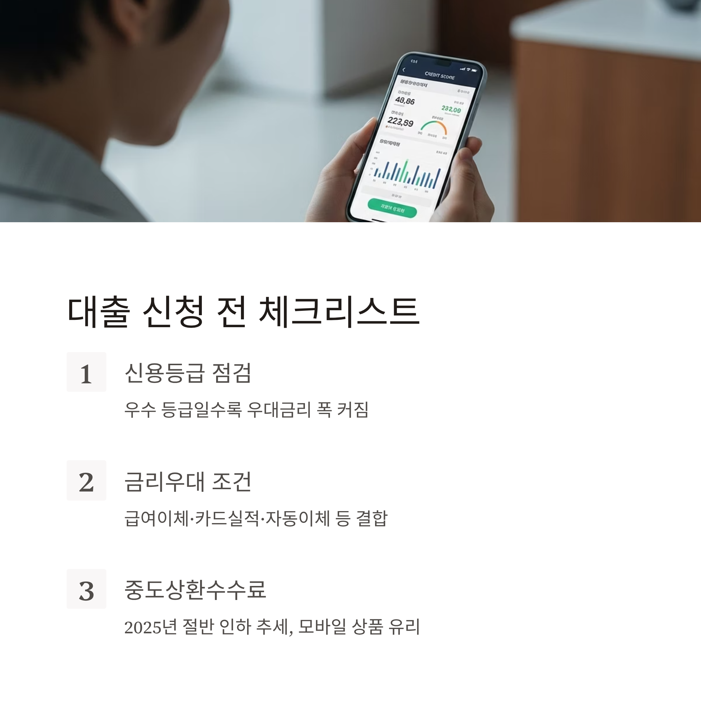 | 중도상환수수료 | 2025년 절반 인하 추세, 모바일 상품 유리 |