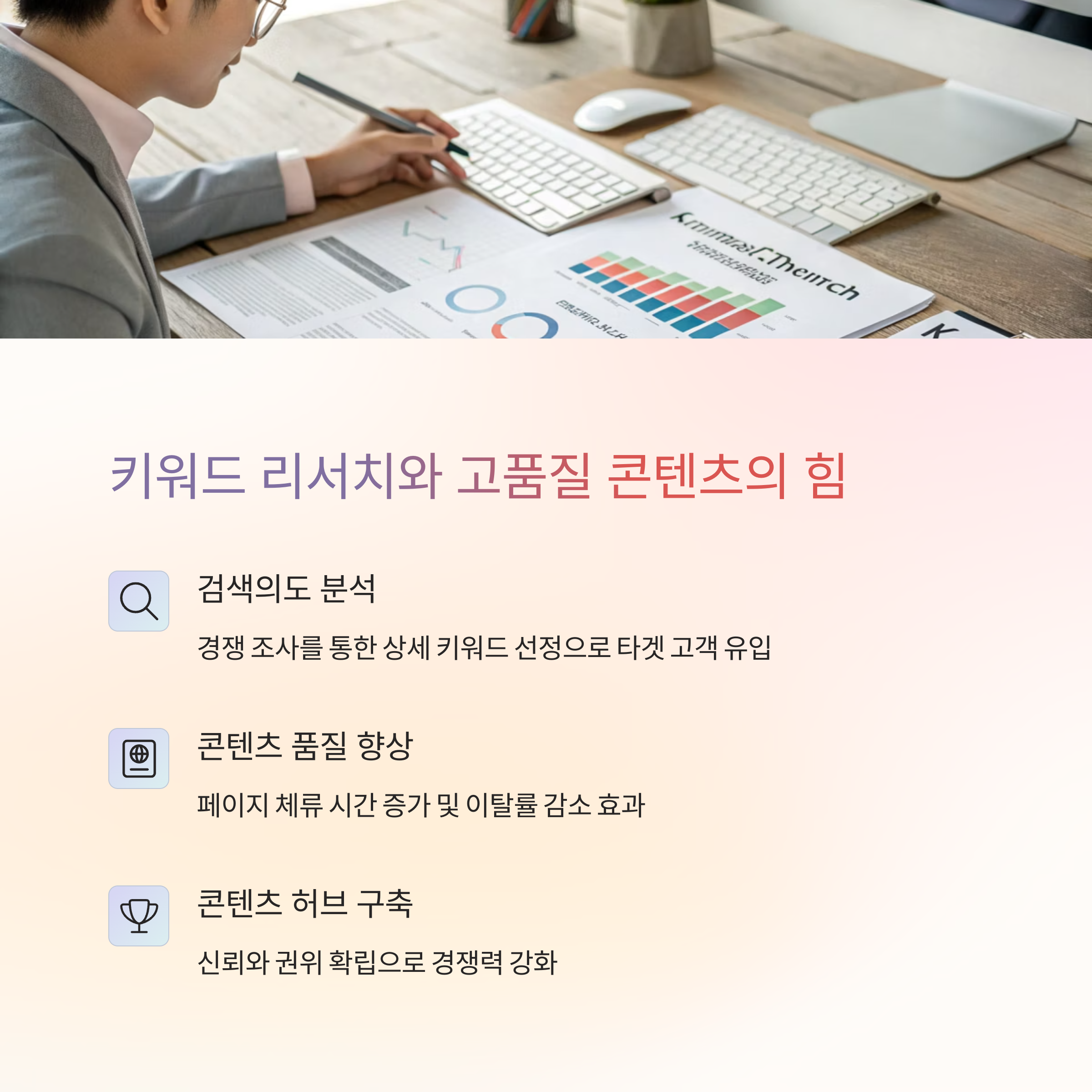 최신 데이터를 바탕으로 검증된 정보를 제공하며, 키워드 리서치부터 성과 측정까지 모두 다룹니다.