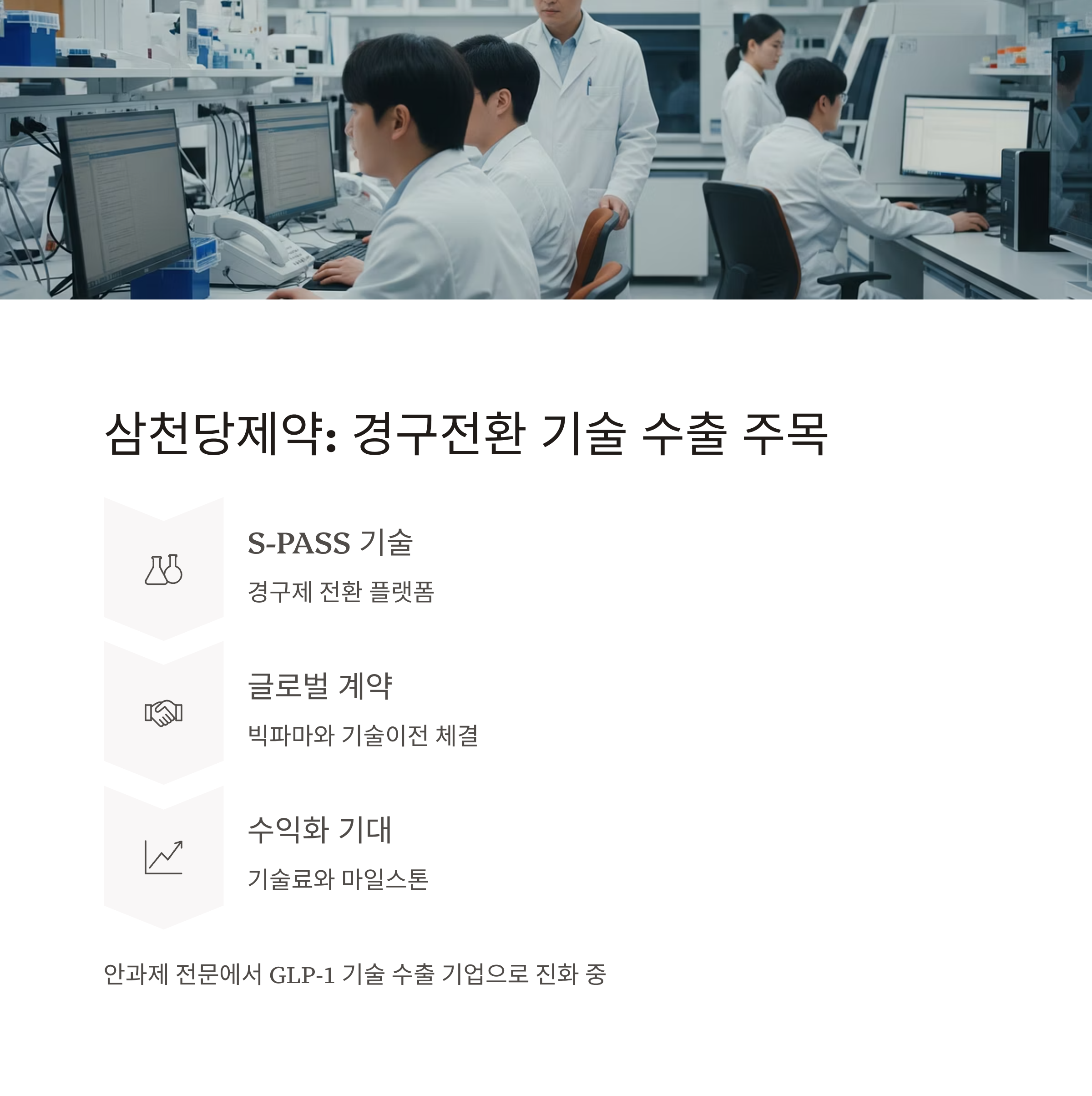 | 삼천당제약 | S-PASS 플랫폼 | 기술이전 완료 | 기술수출 기반의 신사업 확장 |