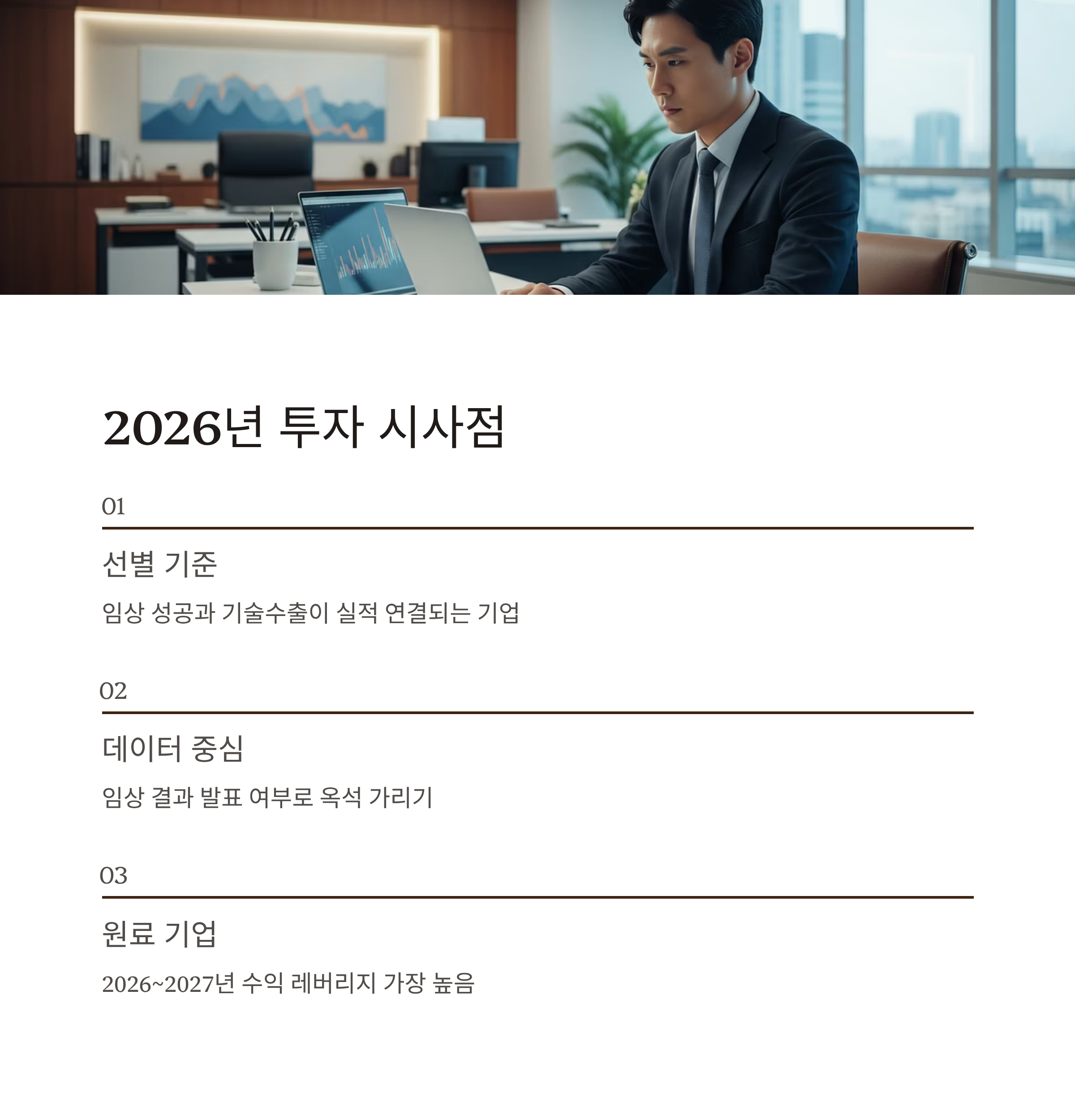 - 단순 기대감보다는 데이터 확보 여부(임상 결과 발표)를 기준으로 옥석을 가려야 합니다.