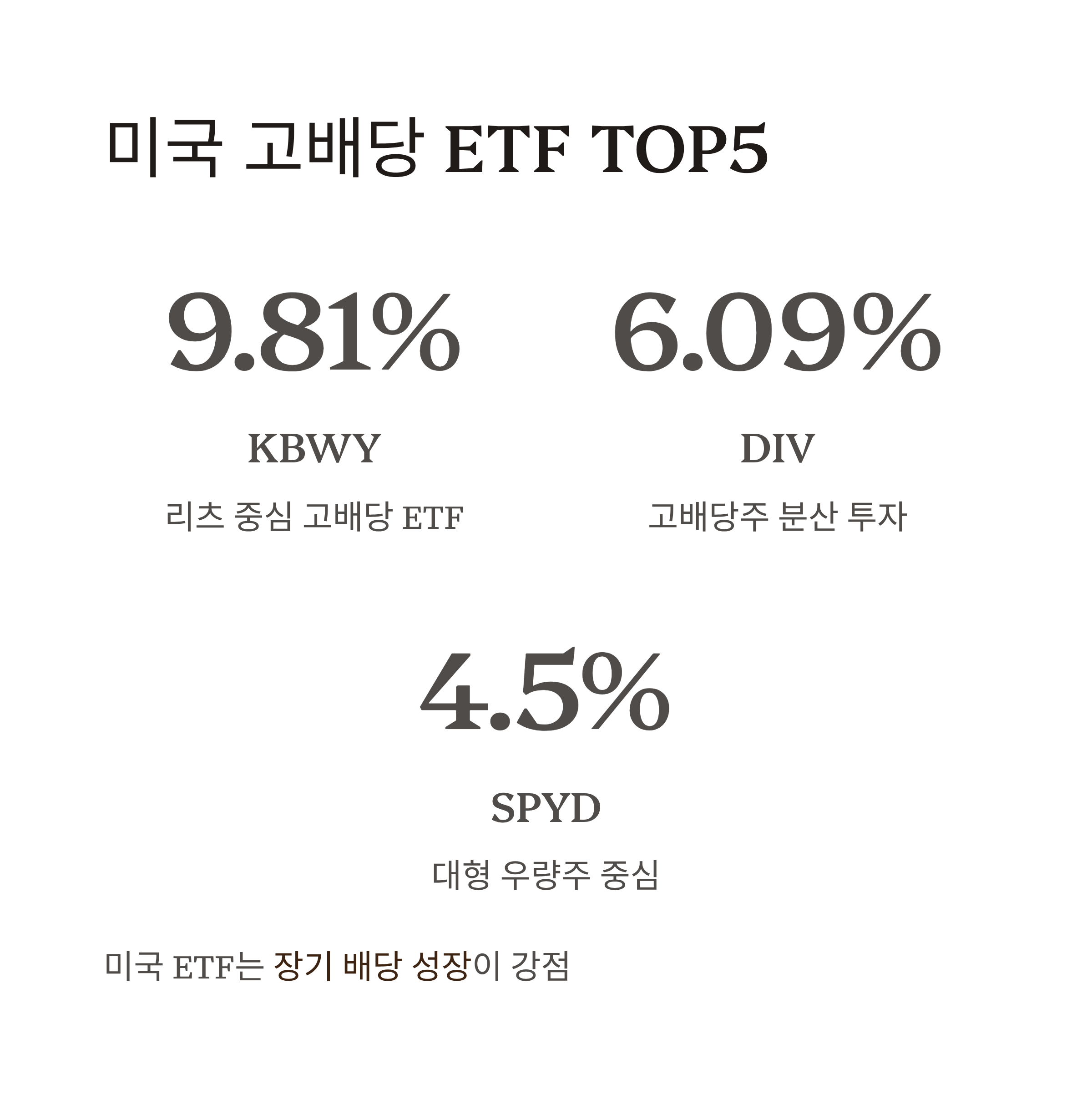 | 2 | DIV (Global X SuperDividend U.S.) | 약 6.09% | 고배당주 분산 투자 |