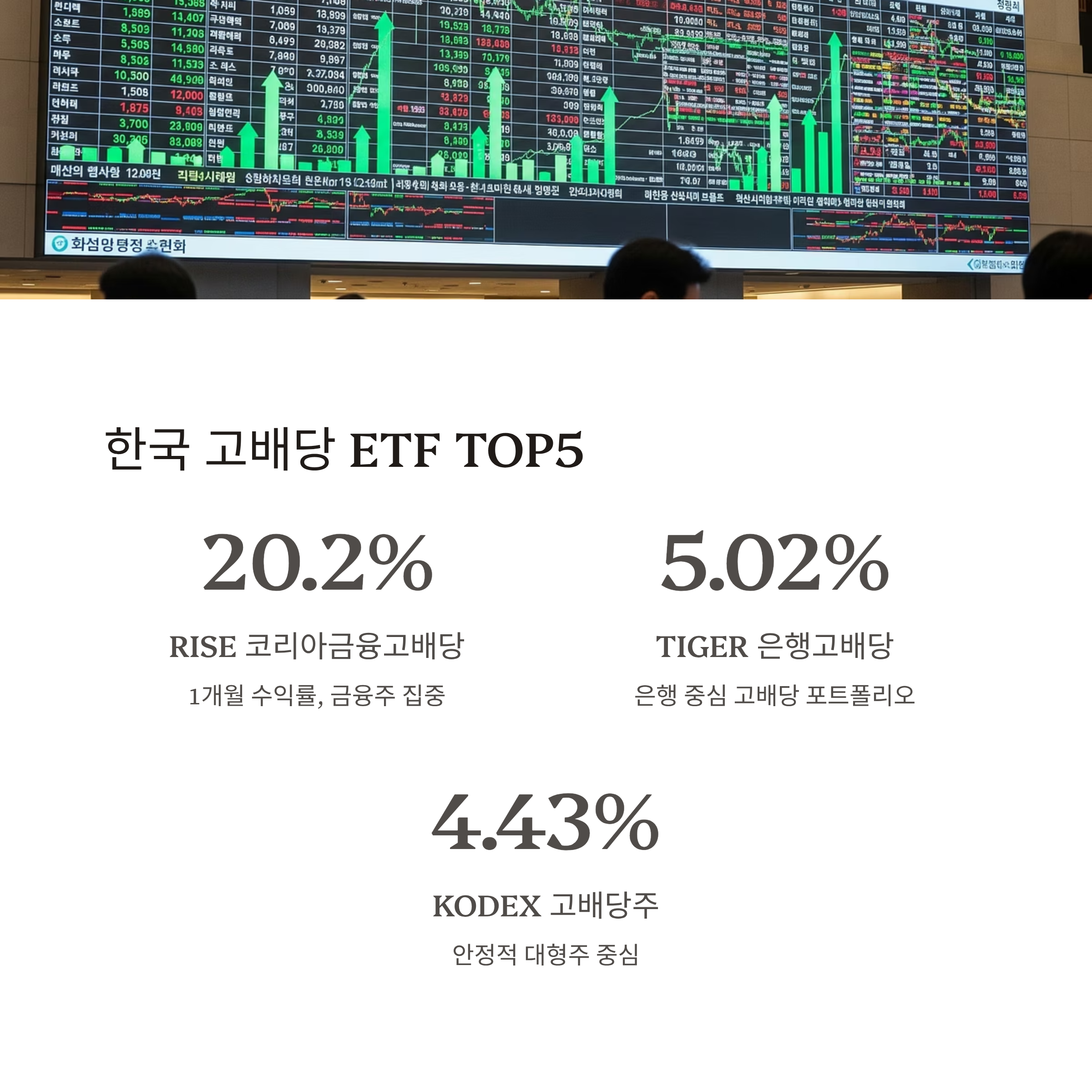 | 1 | RISE 코리아금융고배당 ETF | +20.2% (1개월) | 금융주 집중 + 고배당 집중 전략 |