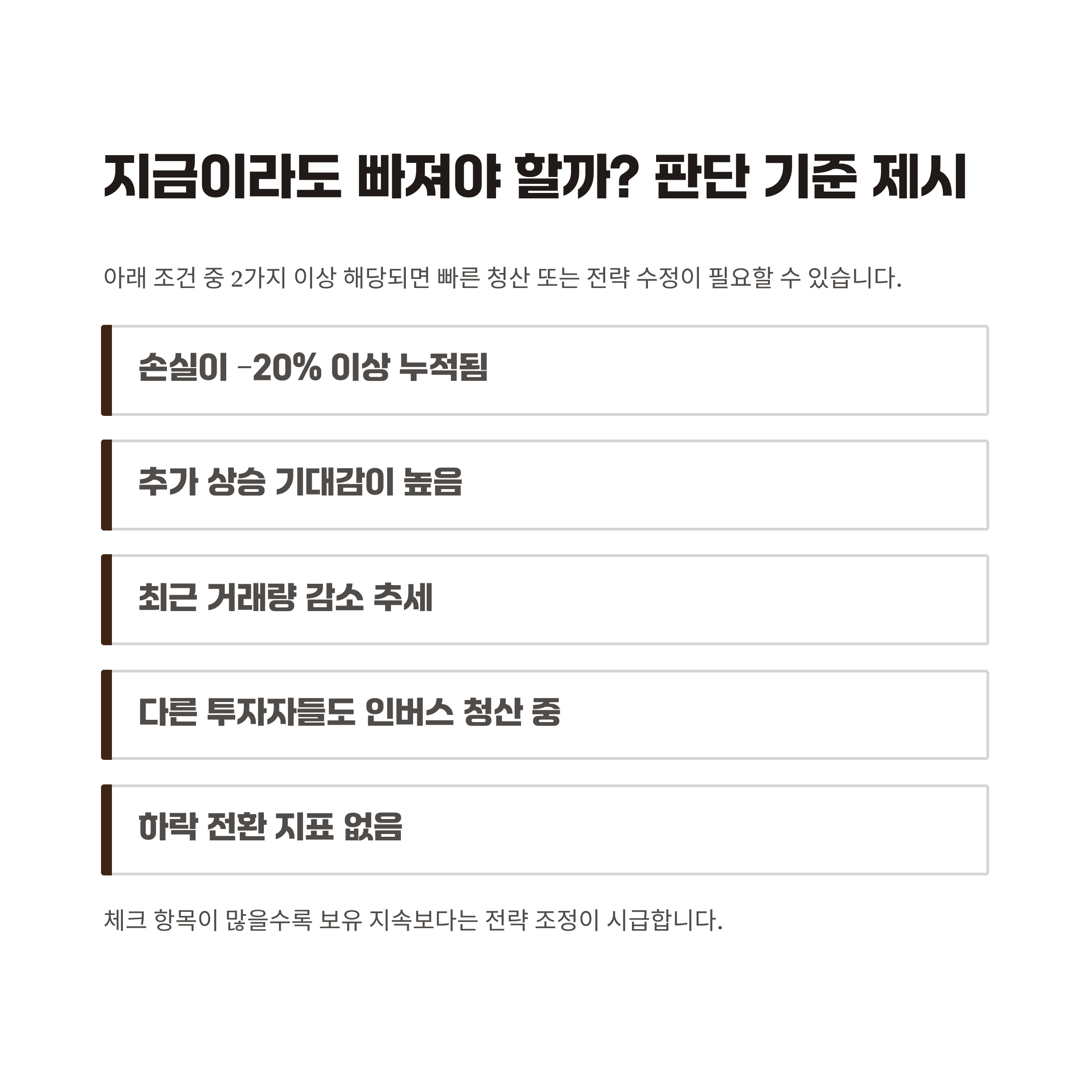 체크 항목이 많을수록 보유 지속보다는 전략 조정이 시급합니다.
