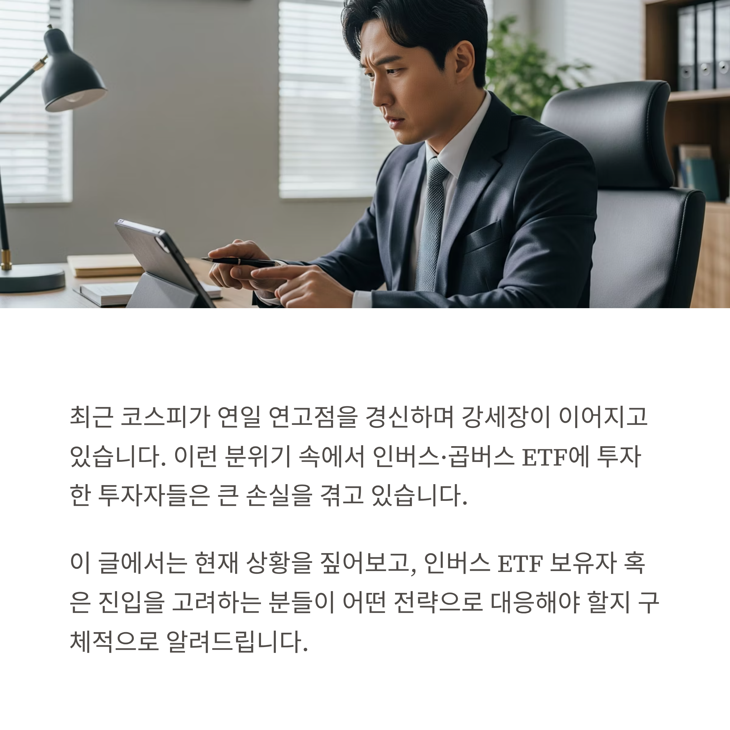 최근 코스피가 연일 연고점을 경신하며 강세장이 이어지고 있습니다. 이런 분위기 속에서 인버스·곱버스 ETF에 투자한 투자자들은 큰 손실을 겪고 있는데요. 이 글에서는 현재 상황을 짚어보고, 인버스 ETF 보유자 혹은 진입을 고려하는 분들이 어떤 전략으로 대응해야 할지 구체적으로 알려드립니다.