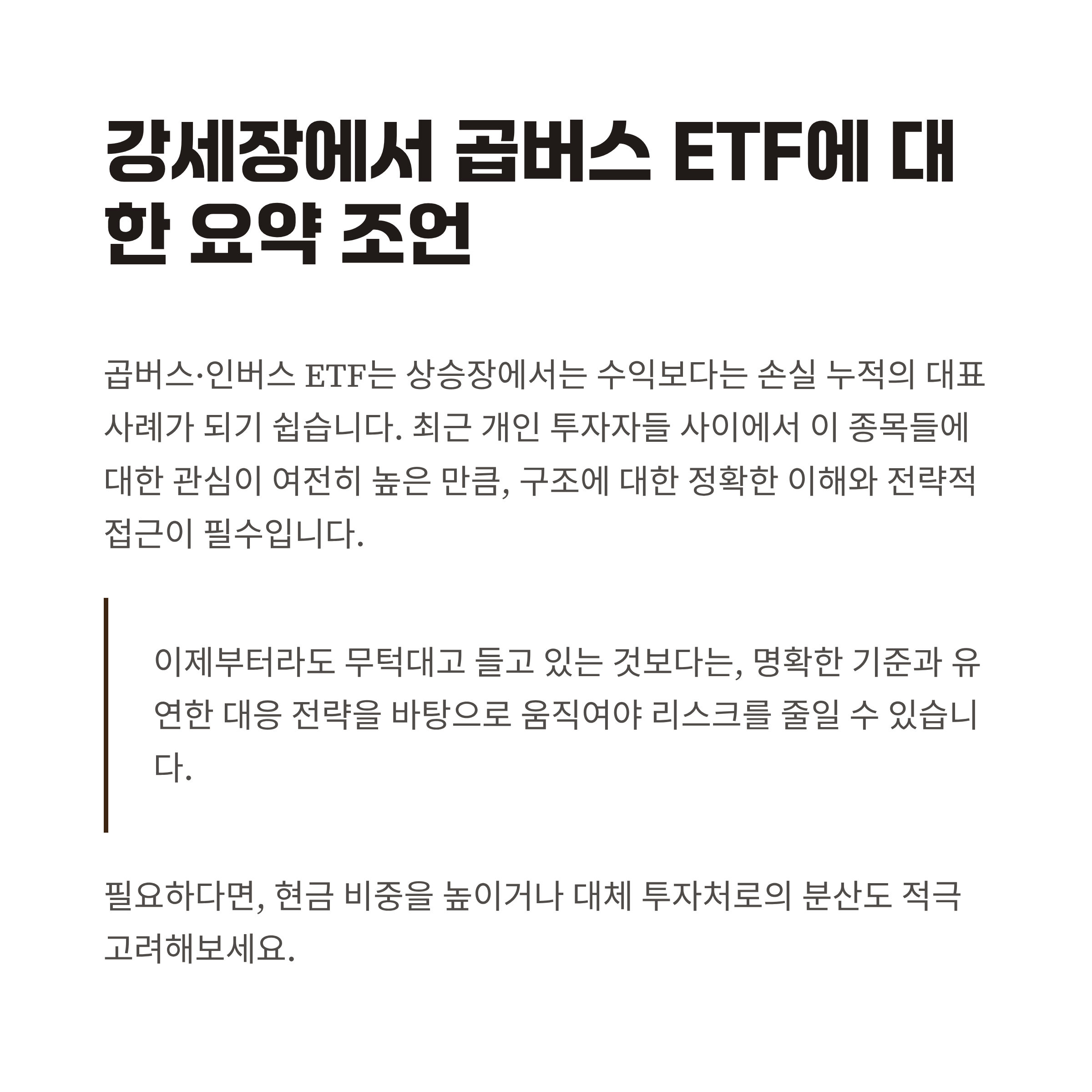 강세장에서 곱버스 ETF에 대한 요약 조언