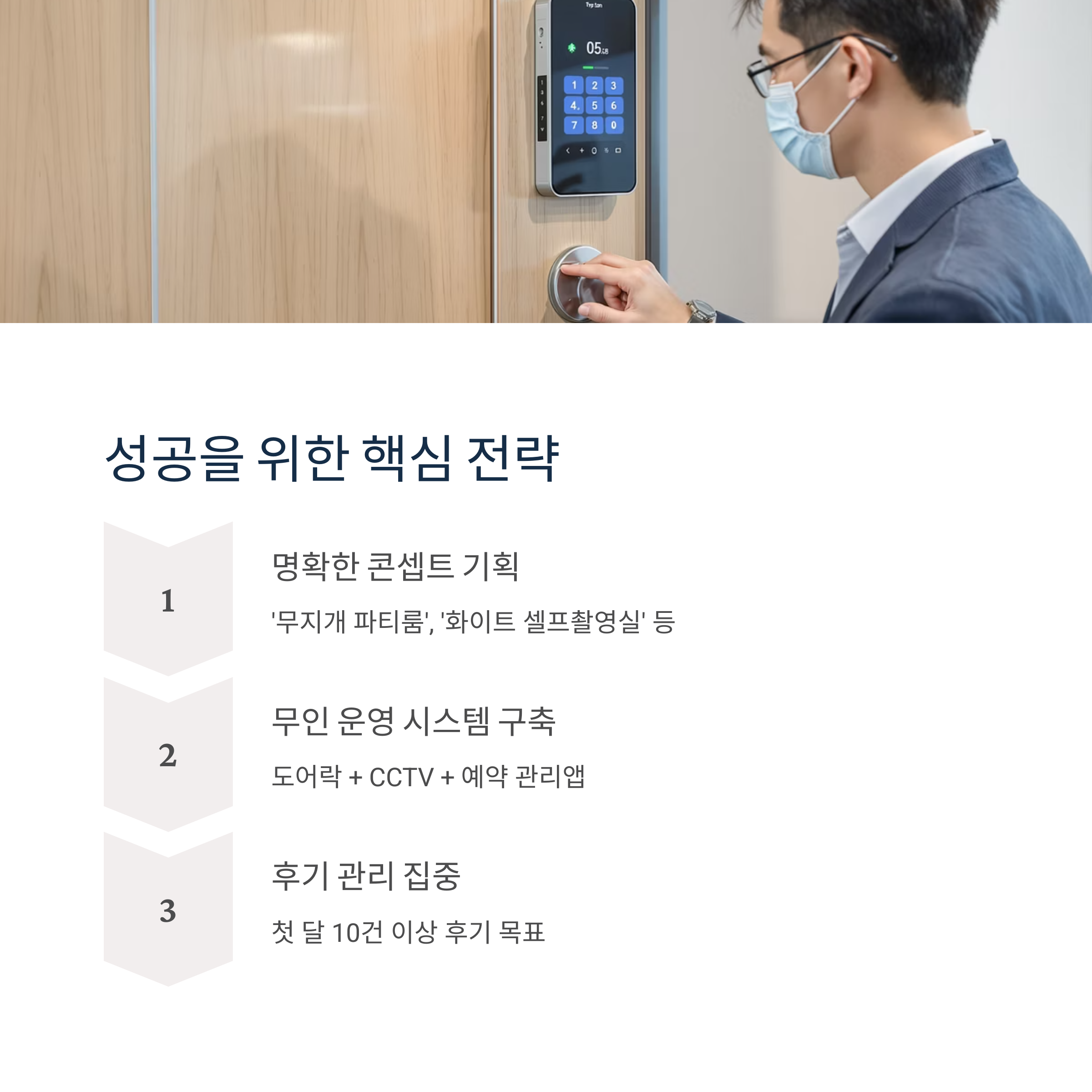 - 명확한 콘셉트 기획: ‘무지개 파티룸’, ‘화이트 셀프촬영실’ 등