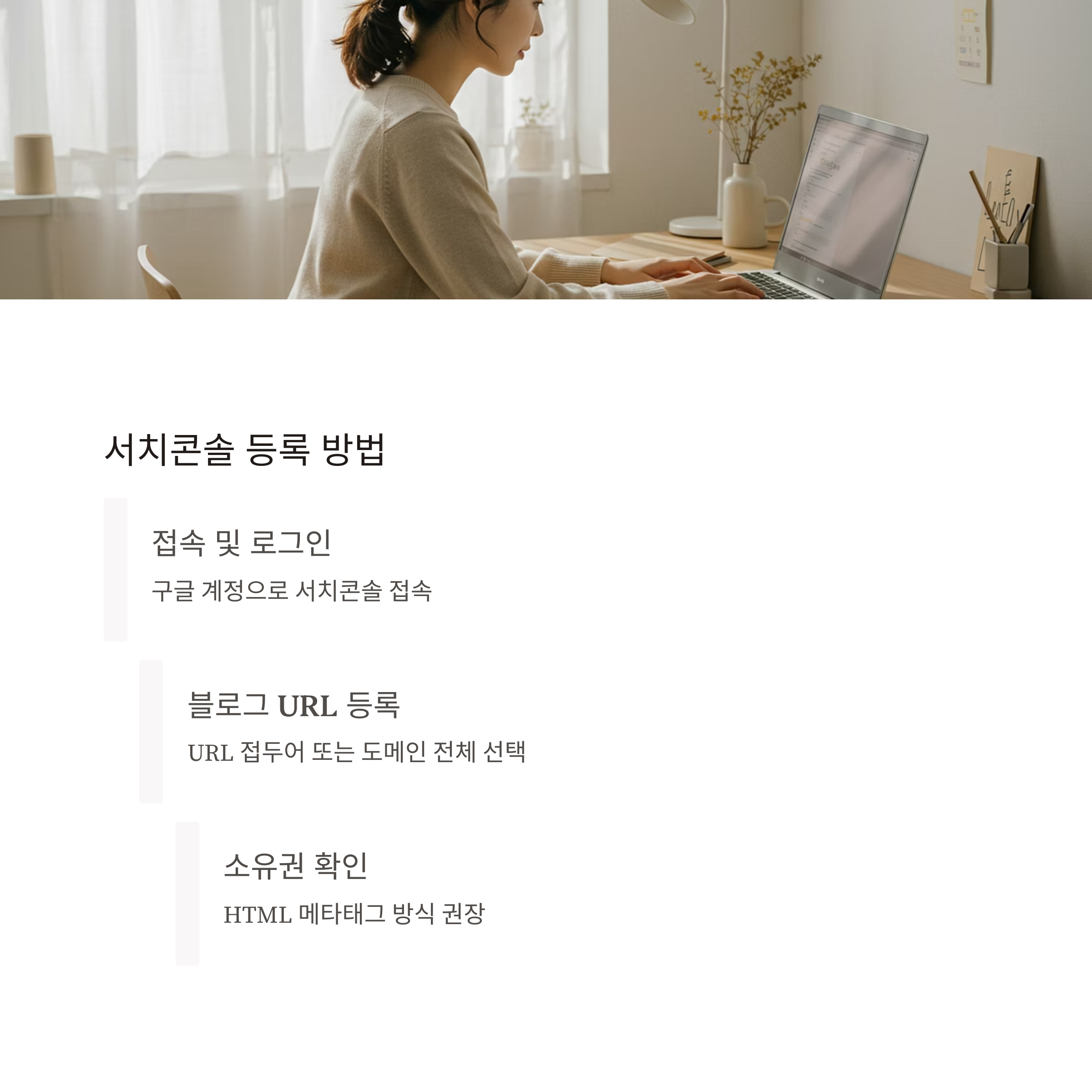 | 필요 절차 | 블로그 등록 → 소유권 인증 → URL 색인 요청 |