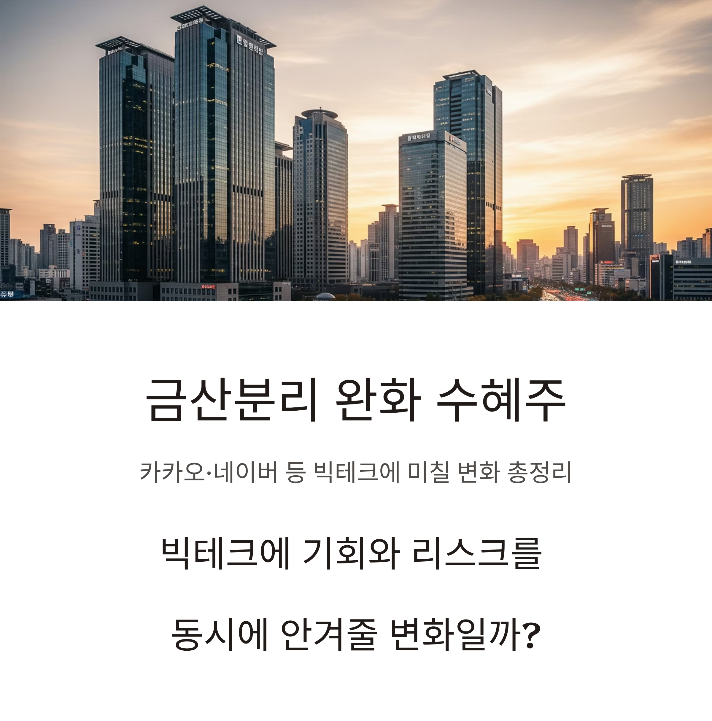 금산분리 완화 움직임이 본격화되며 금융과 산업의 경계가 조금씩 흐려지고 있습니다. 그 중심에 선 건 카카오, 네이버 같은 빅테크 기업들인데요. 이들이 이 변화의 수혜자가 될지, 아니면 새로운 리스크에 노출될지에 대한 분석이 투자자들 사이에서 뜨겁습니다. 이 글에서는 금산분리 완화의 핵심 개념부터, 수혜 가능성이 있는 종목, 그리고 카카오·네이버가 맞이할 변화까지 집중 분석해 보겠습니다.