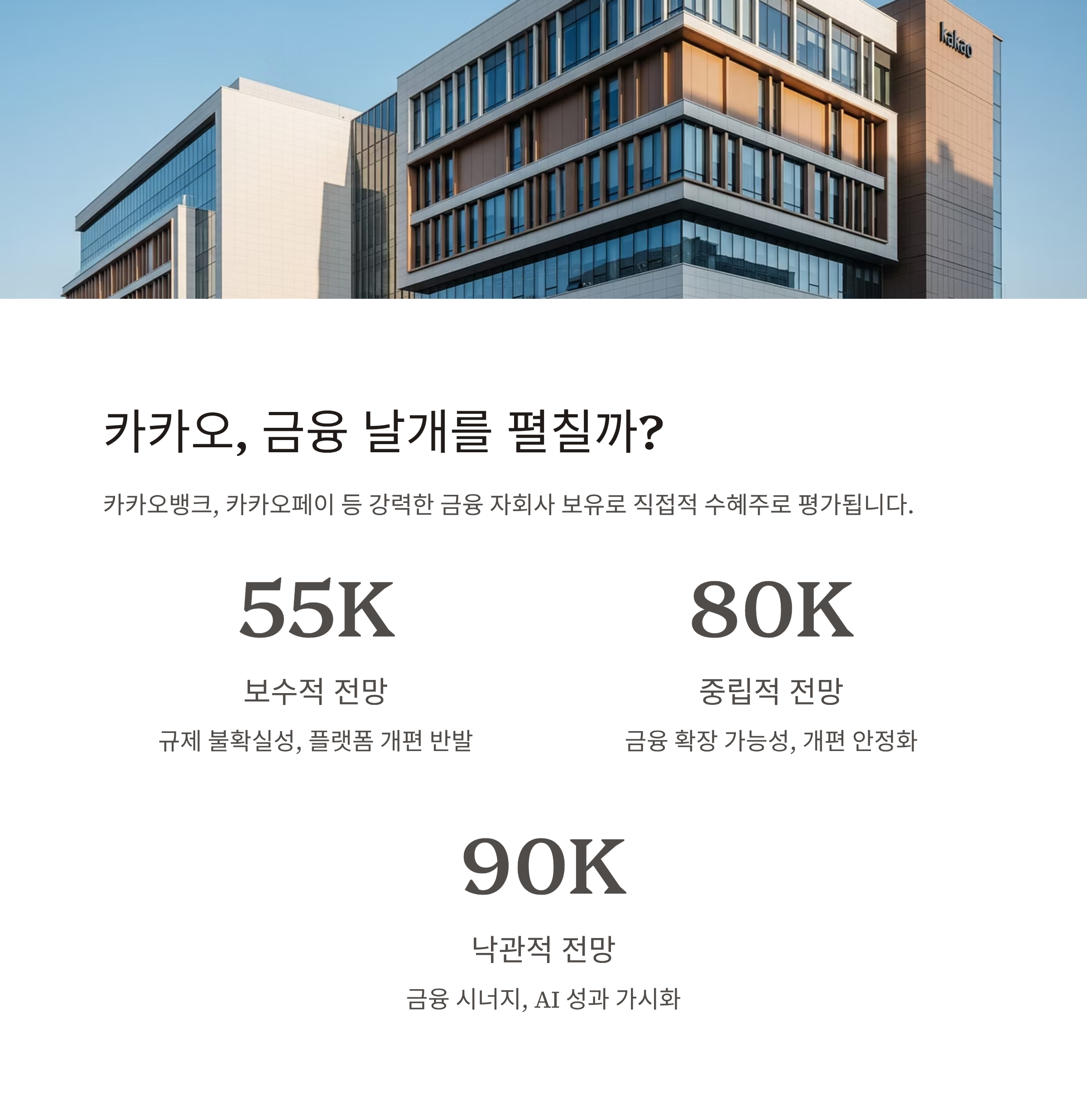 | 중립적 | 70,000 ~ 90,000 | 금융 확장 가능성 반영, 개편 안정화 |