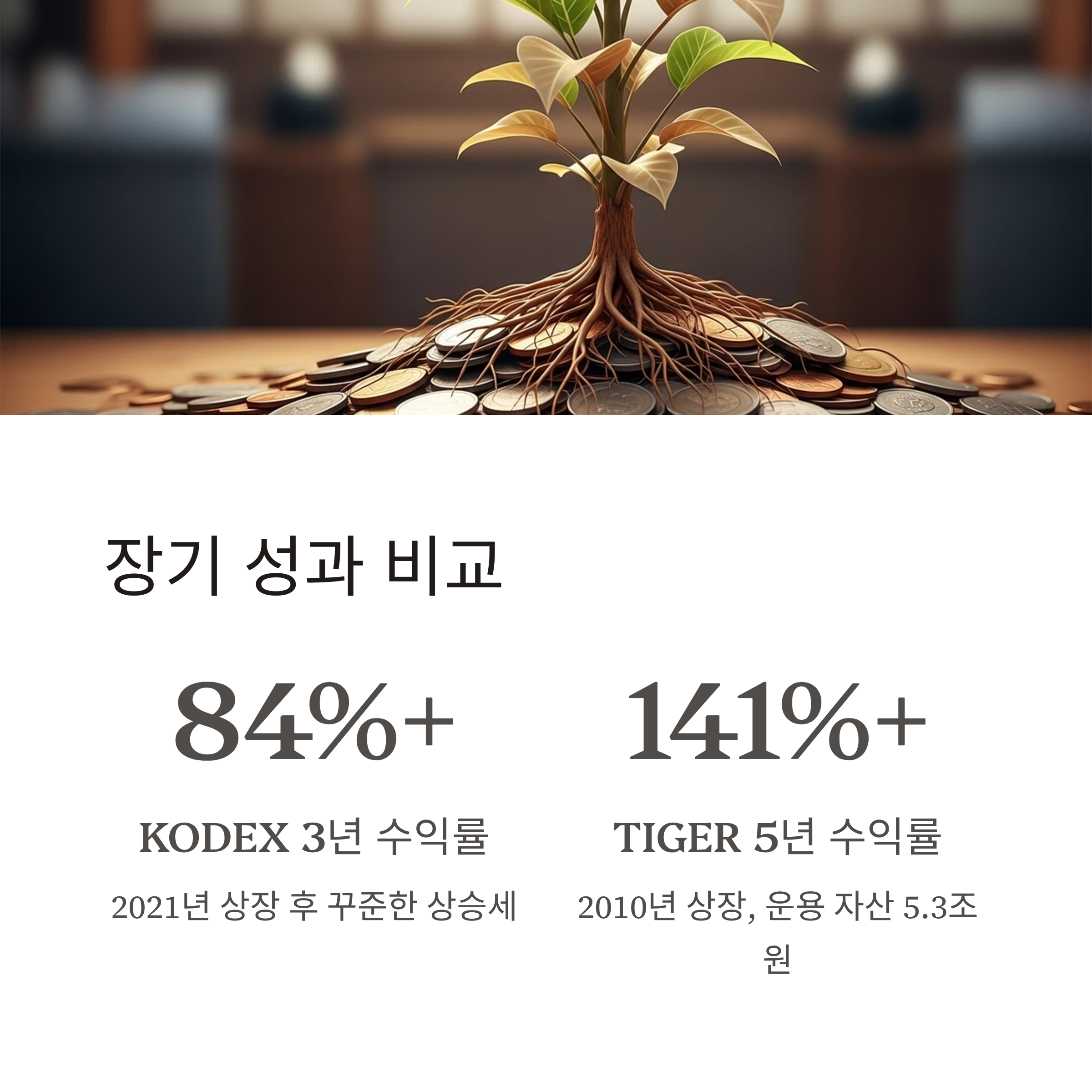 KODEX와 TIGER 모두 최근 1년·3년 수익률은 거의 유사한 흐름을 보이고 있습니다.