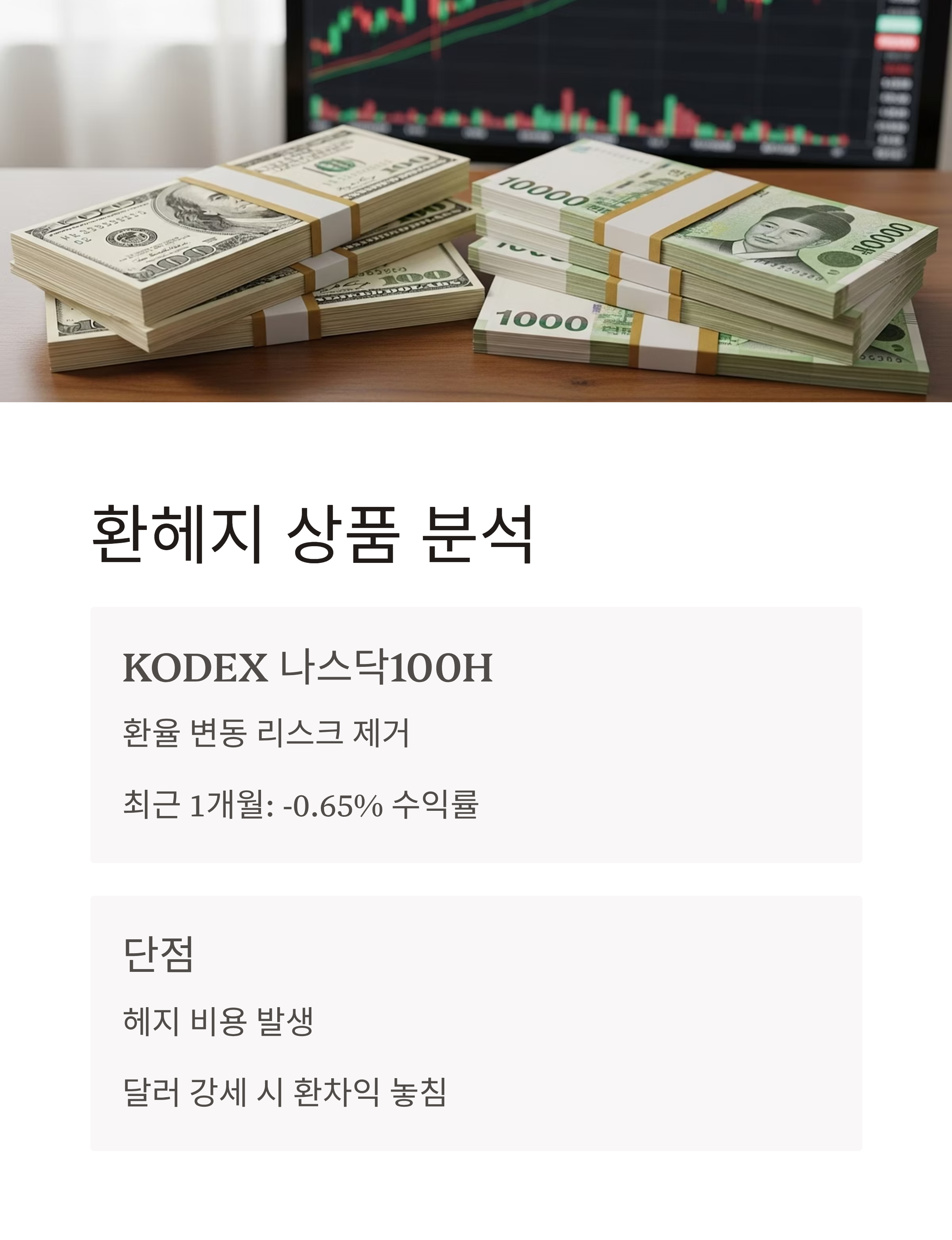 KODEX 나스닥100H(환헤지형)은 환율 변동 리스크를 제거한 구조지만,