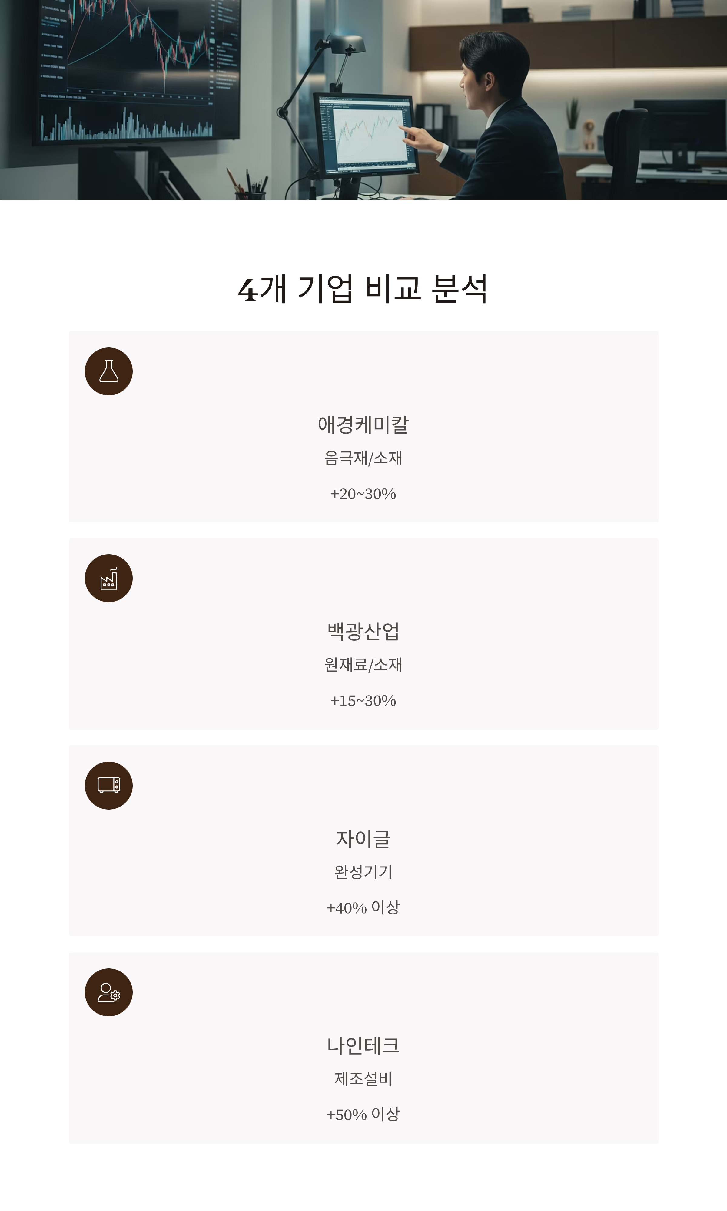 4개 기업 테마 주가 흐름 및 상승 여력 비교
