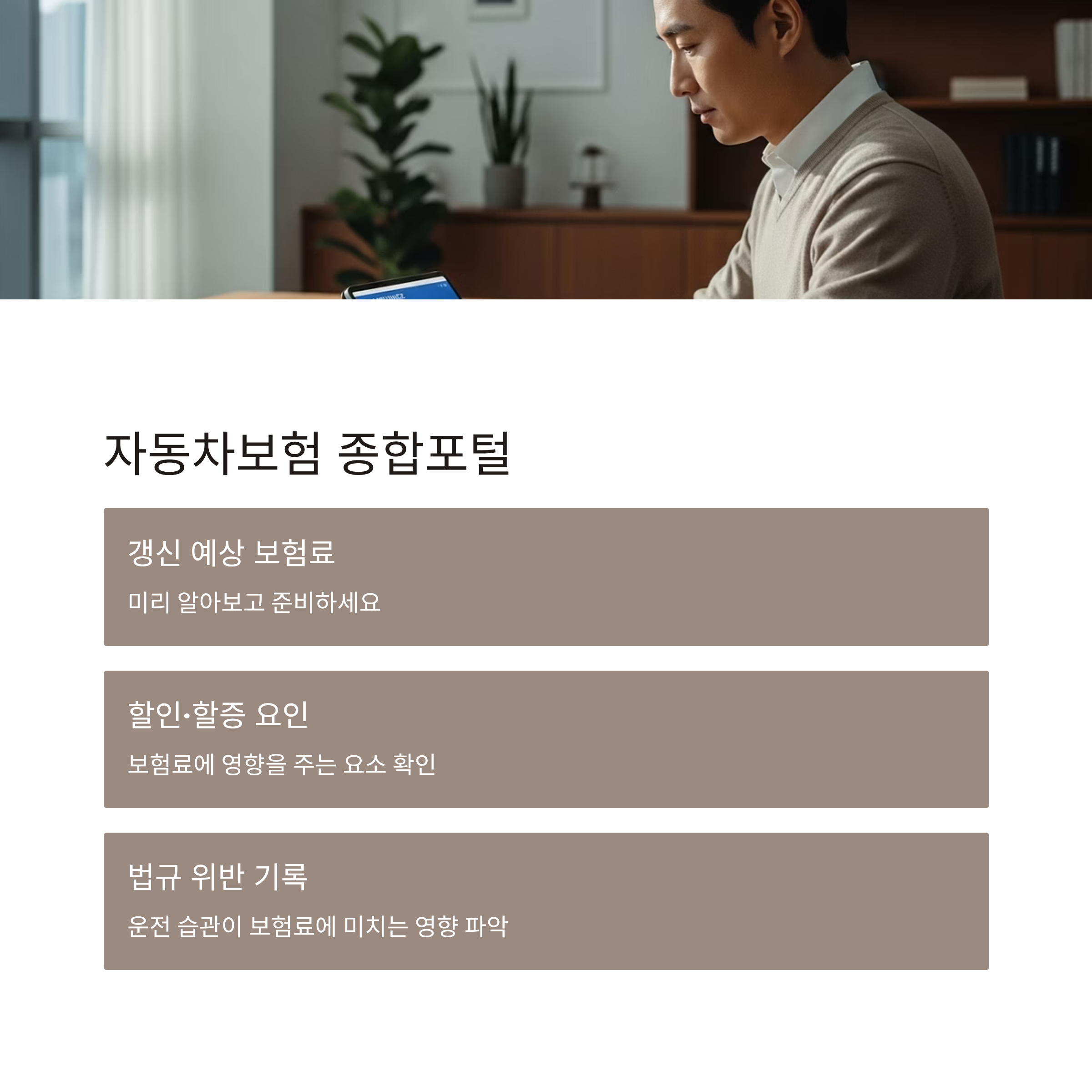 - 갱신 전에 조건 점검 → 자동차보험 종합포털에서 할인·할증 확인