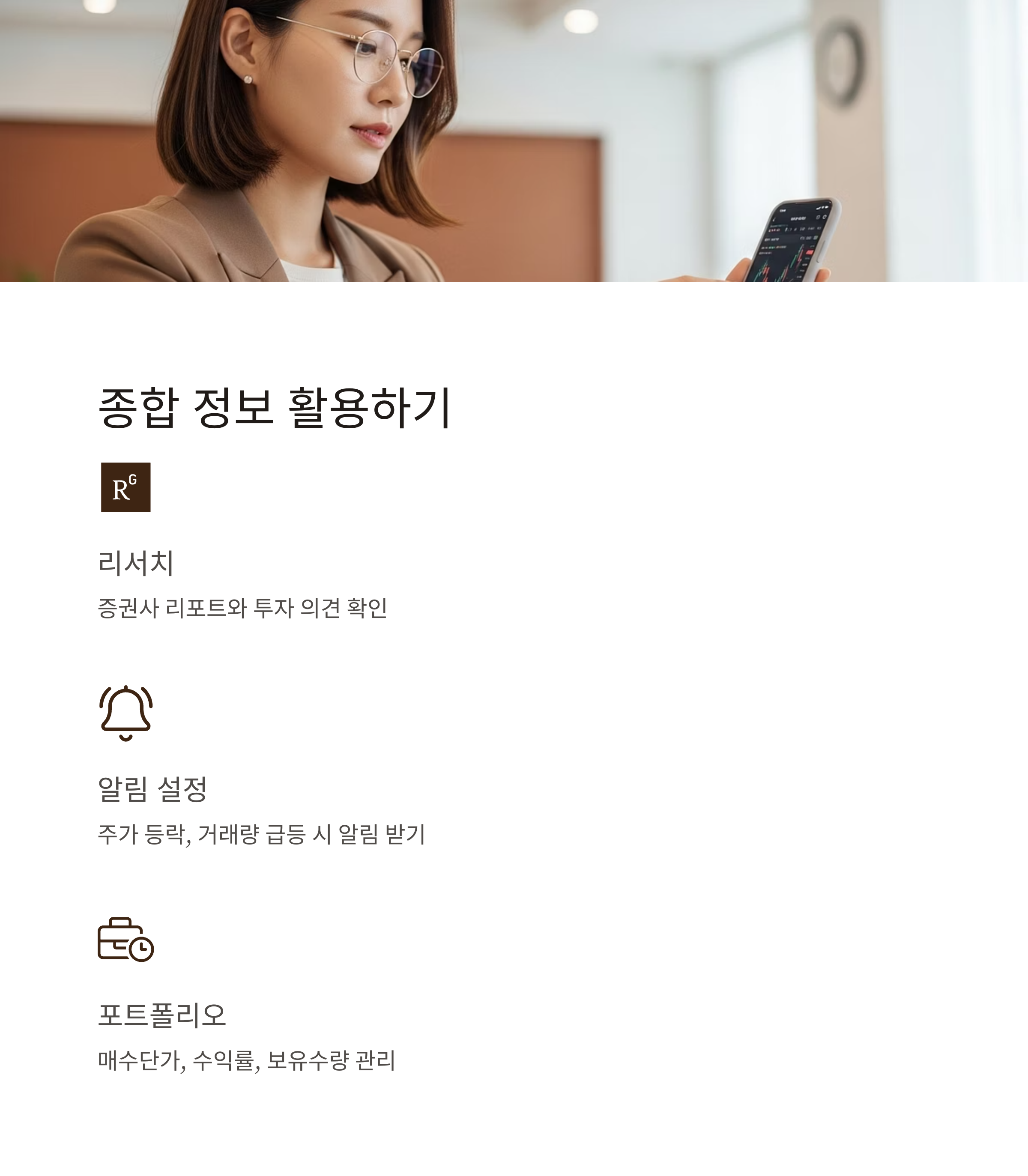 리서치, 공시, 알림까지 종합 정보 제공