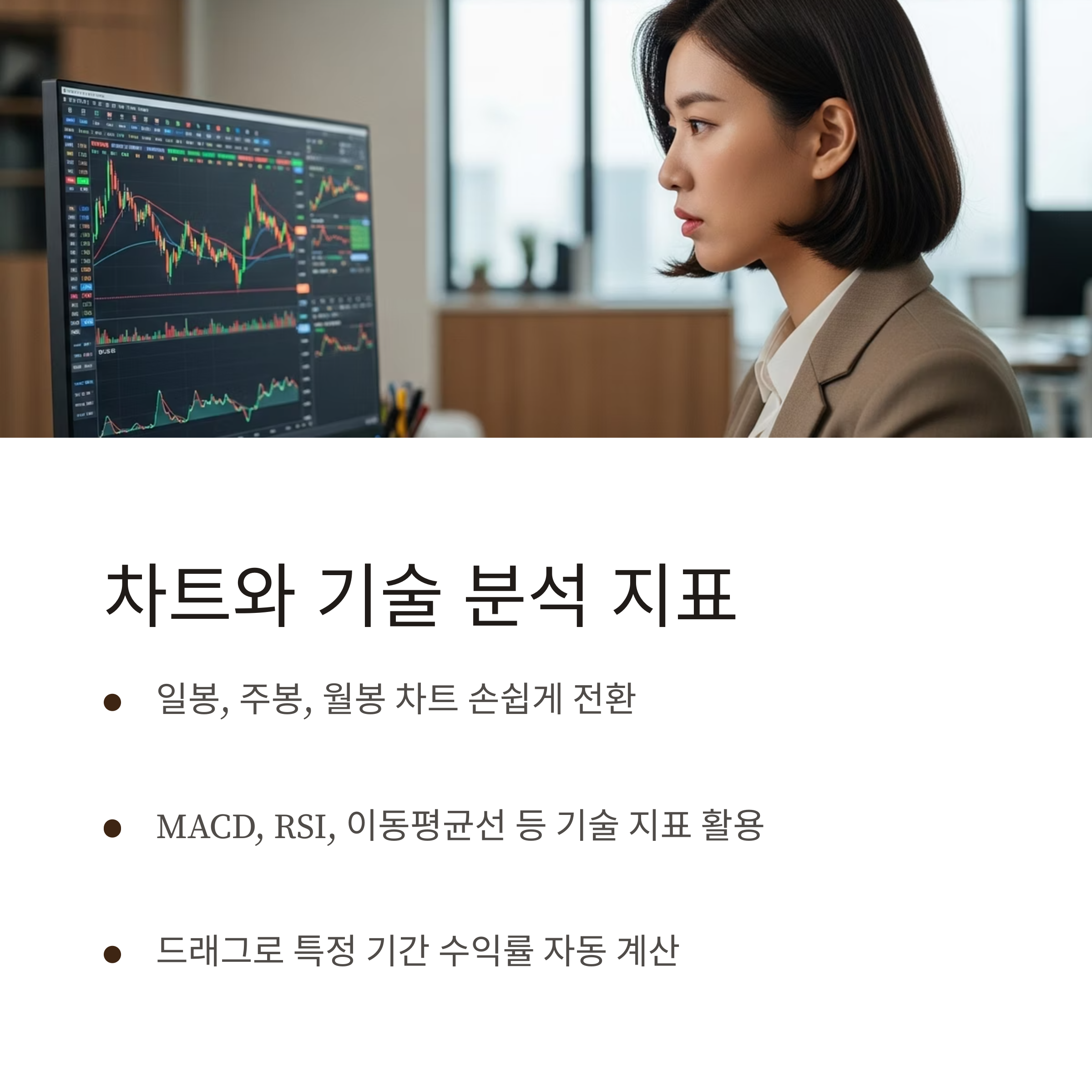 복잡한 HTS나 별도 툴 없이도 종목 분석과 투자 판단이 가능합니다.