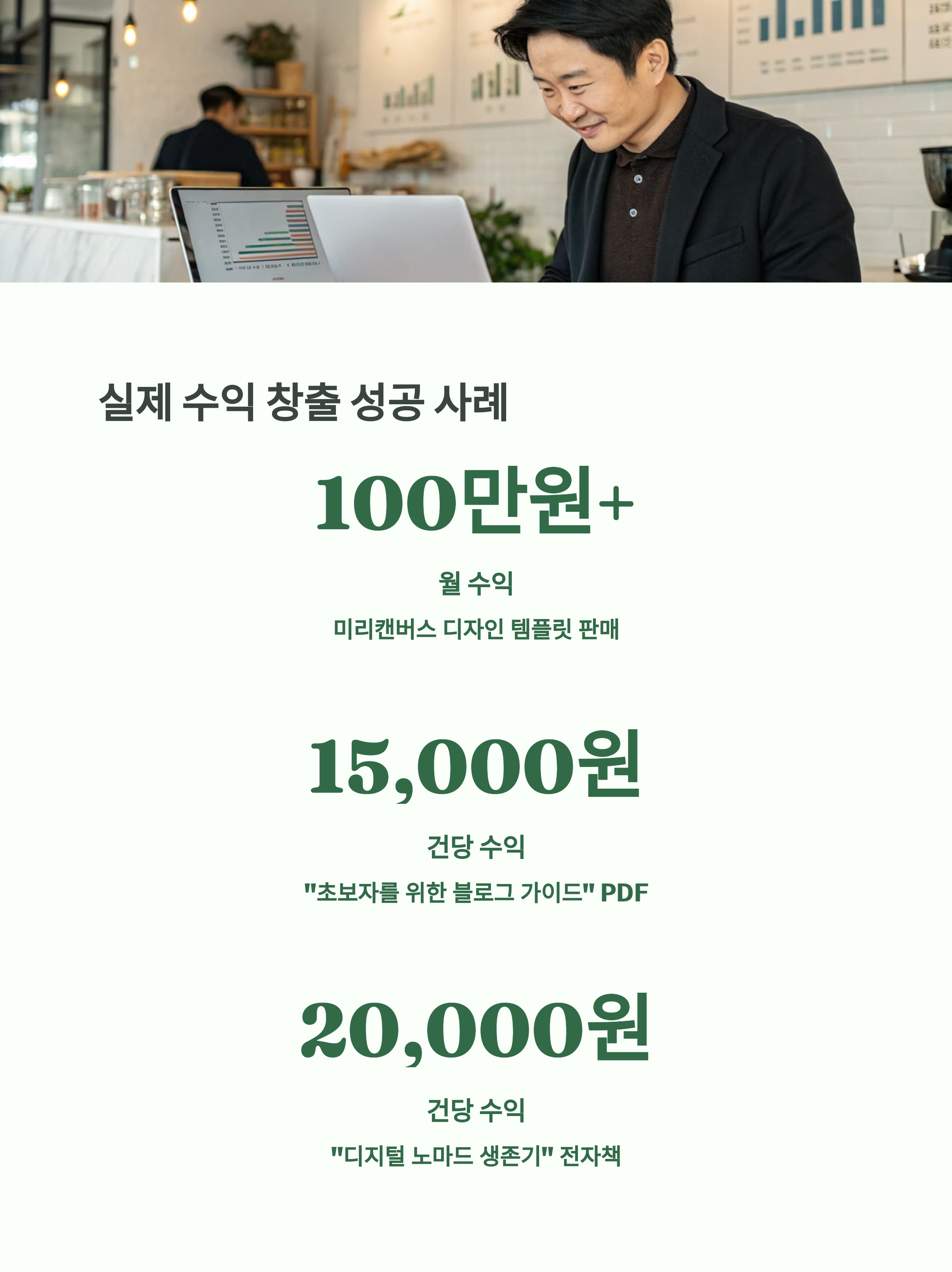 | 수익 방식 | 전자책, 체크리스트, 템플릿, 클래스 등 형태로 판매하여 반복 수익 창출 |