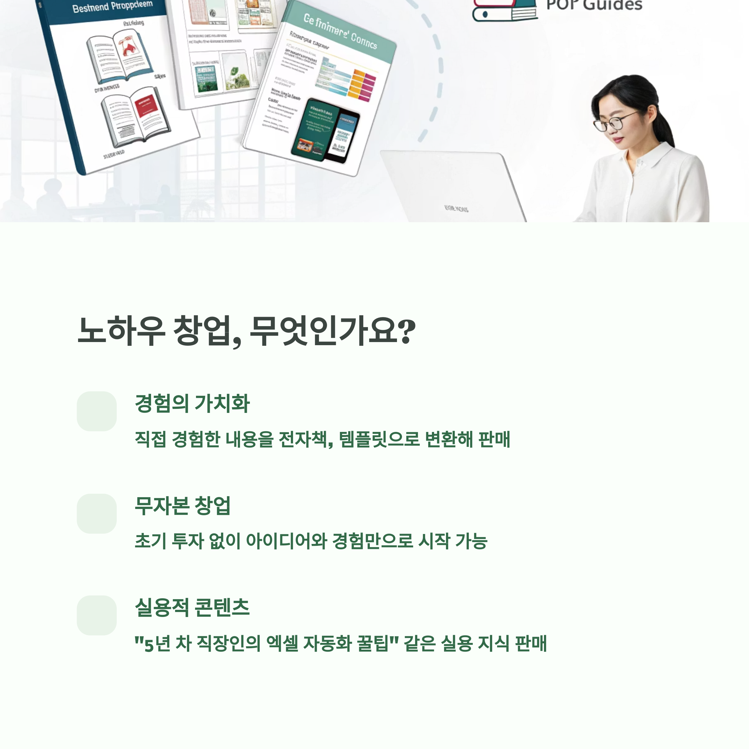 | 노하우 창업 | 특별한 기술이 없어도 경험만으로 디지털 상품을 만들고 수익화하는 모델 |