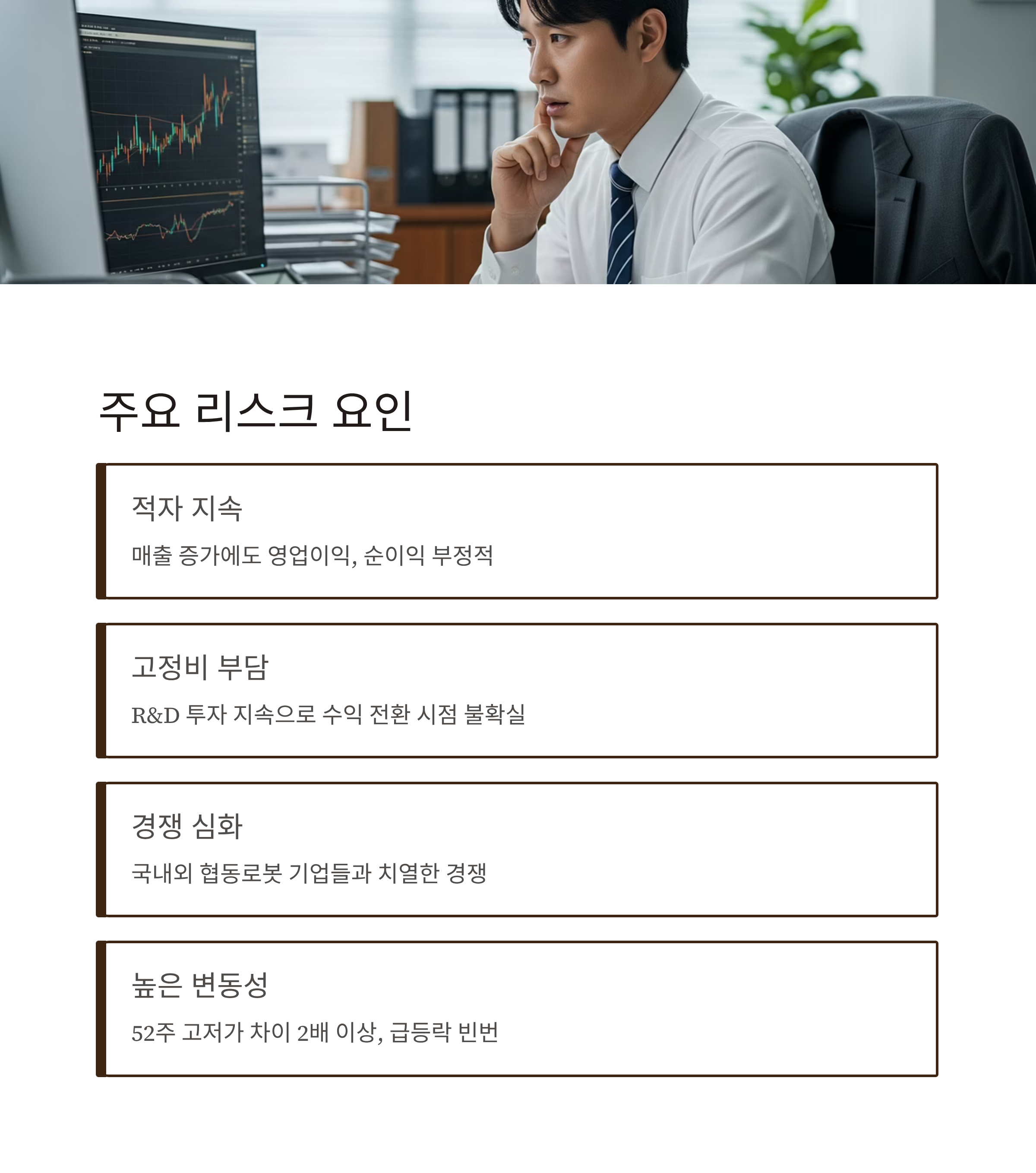- 감속기·모터 등 핵심 부품을 직접 개발 중 → 마진율 개선 여지