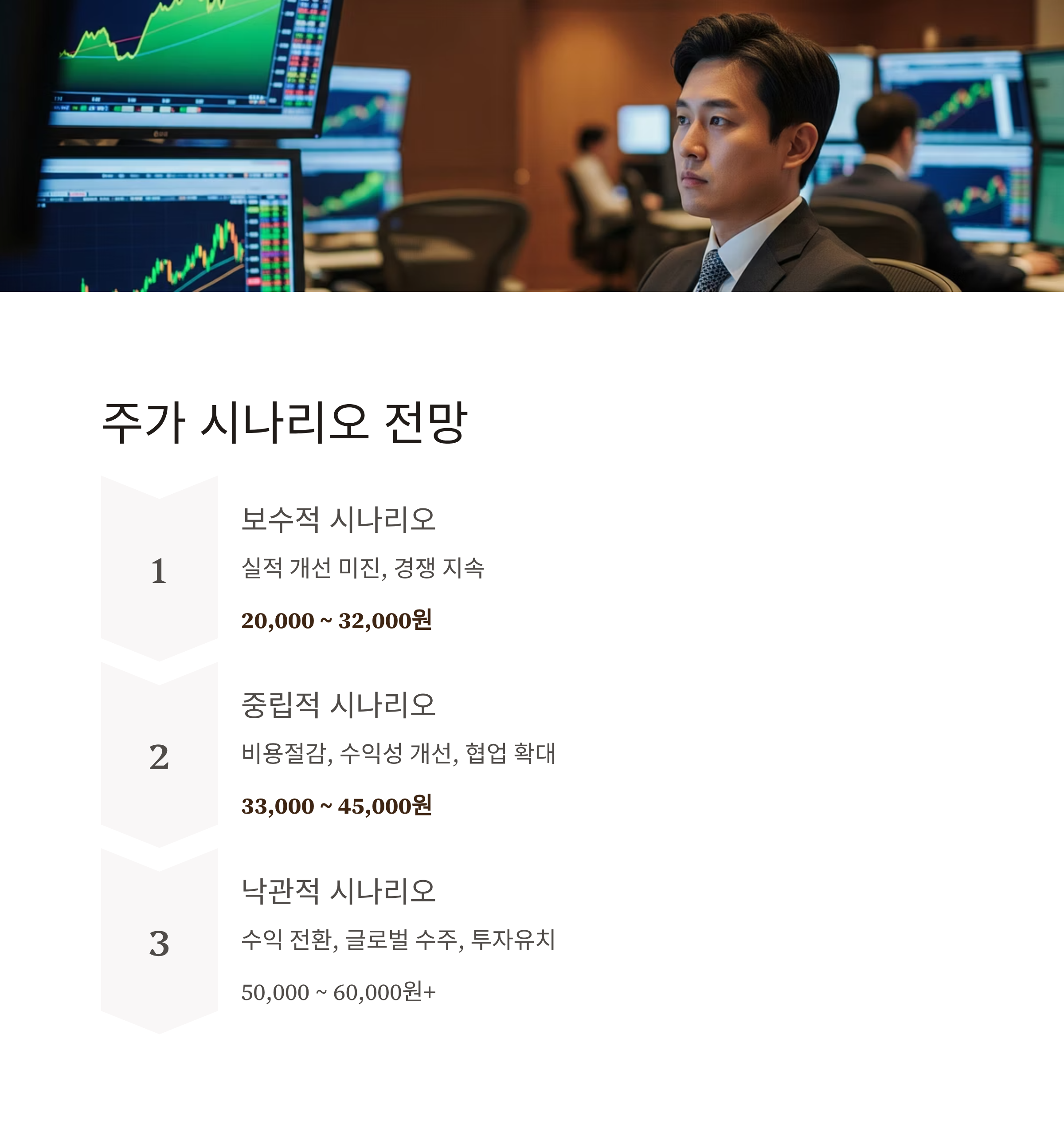 | 중립적 | 비용절감, 수익성 개선, 협업 계약 확대 | 33,000 ~ 45,000원 |