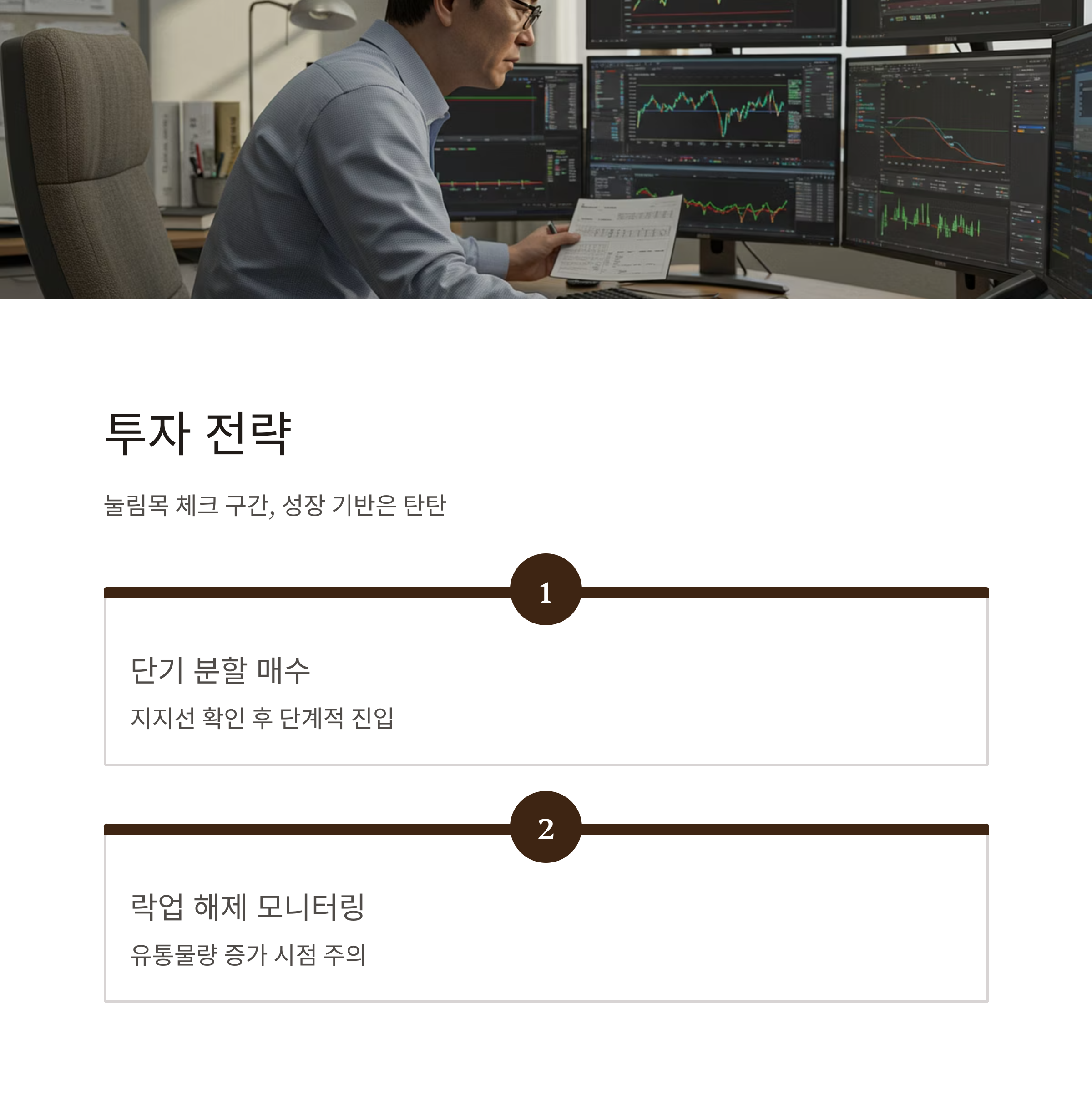 결론: 지금은 ‘눌림목 체크 구간’, 성장 기반은 탄탄