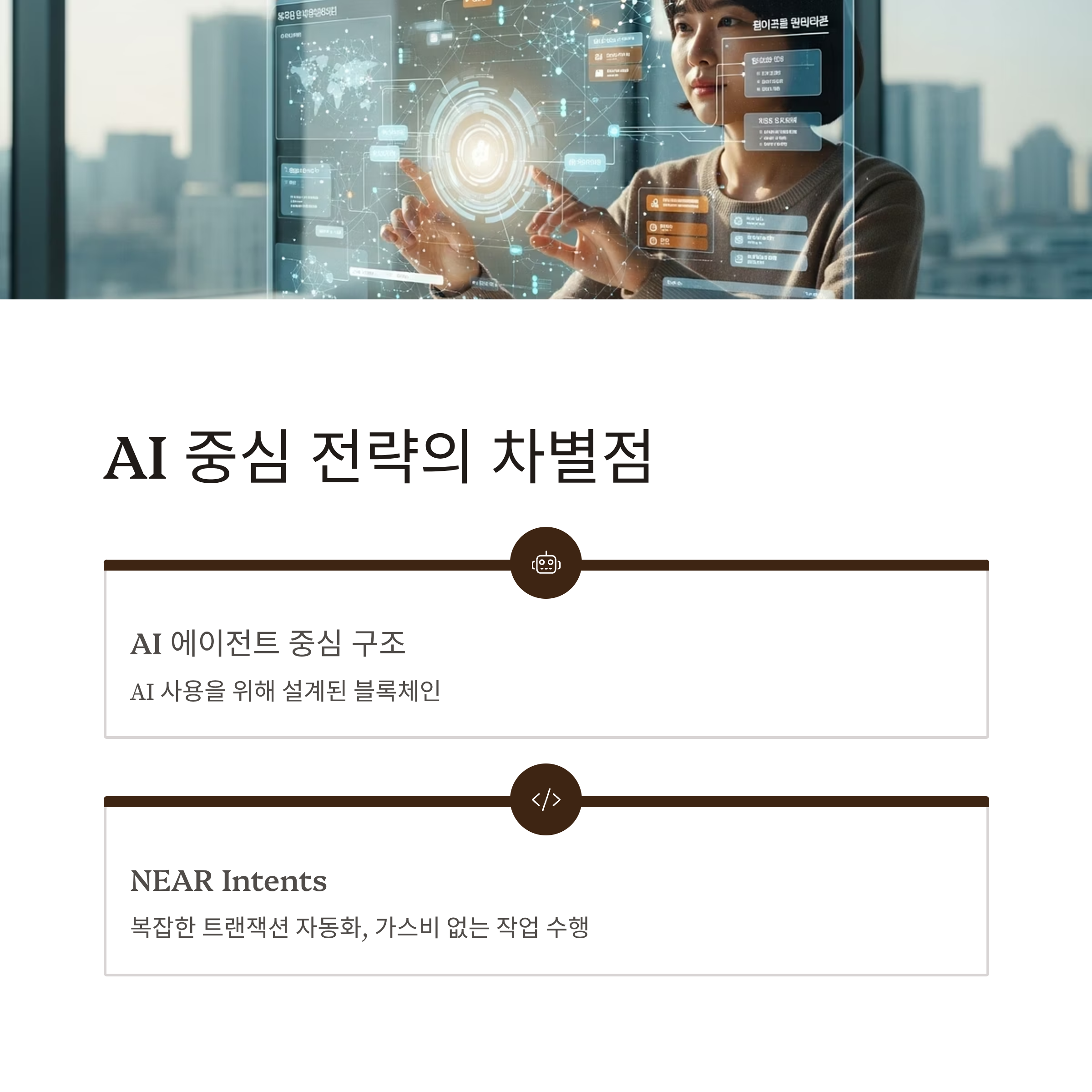 NEAR의 가장 큰 전략적 전환은 "AI에 목적을 둔 체인"이라는 점입니다.