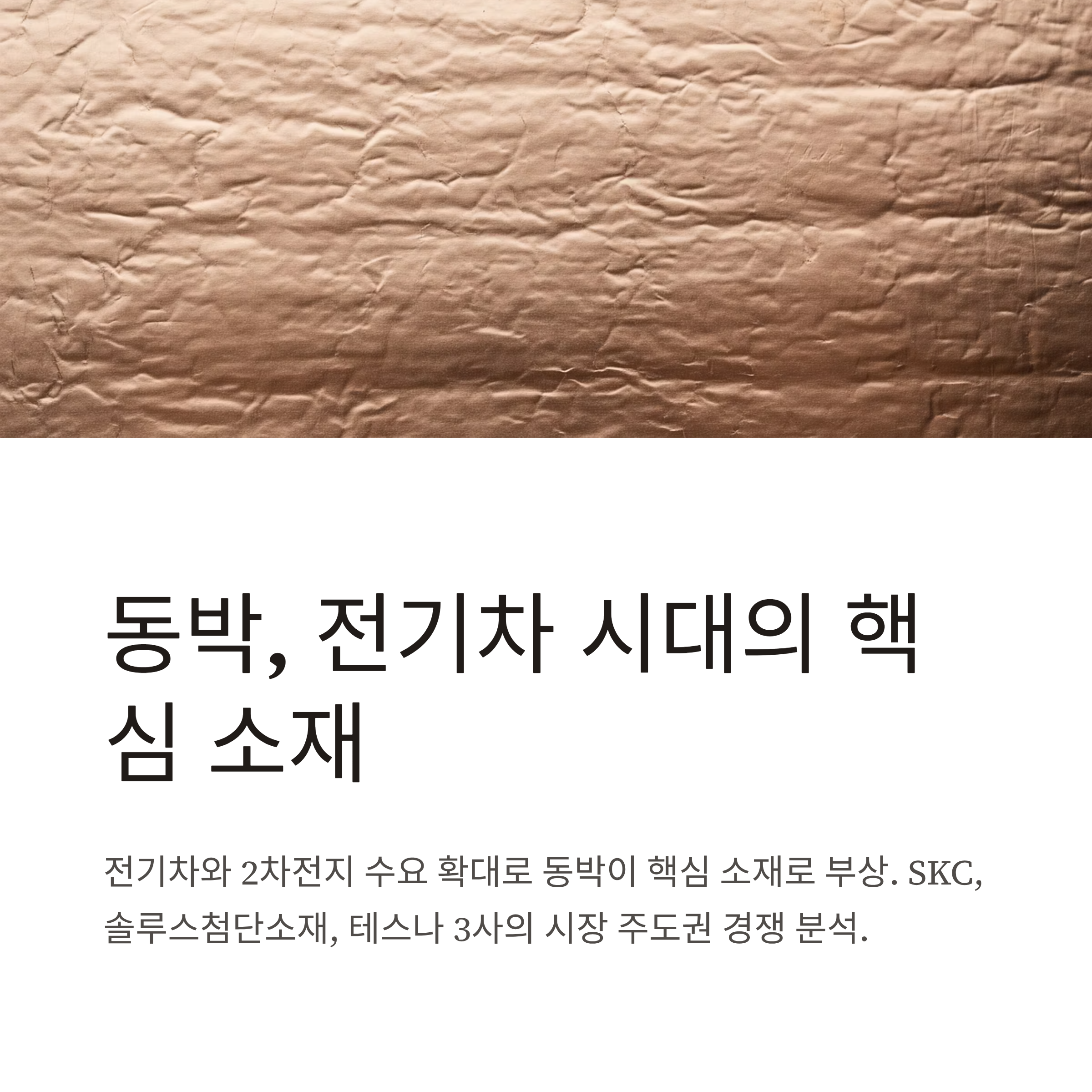 전기차와 2차전지 수요 확대 속에서 ‘동박(구리박)’이 핵심 소재로 주목받고 있습니다. 특히 국내에서는 SKC, 솔루스첨단소재, 테스나 세 기업이 시장에서 자주 비교되곤 합니다. 이 글에서는 세 기업의 사업 구조와 수익성, 기술력, 주가 밸류에이션 등을 종합 분석해보며, 동박 시장의 ‘대장주’ 가능성을 짚어봅니다.