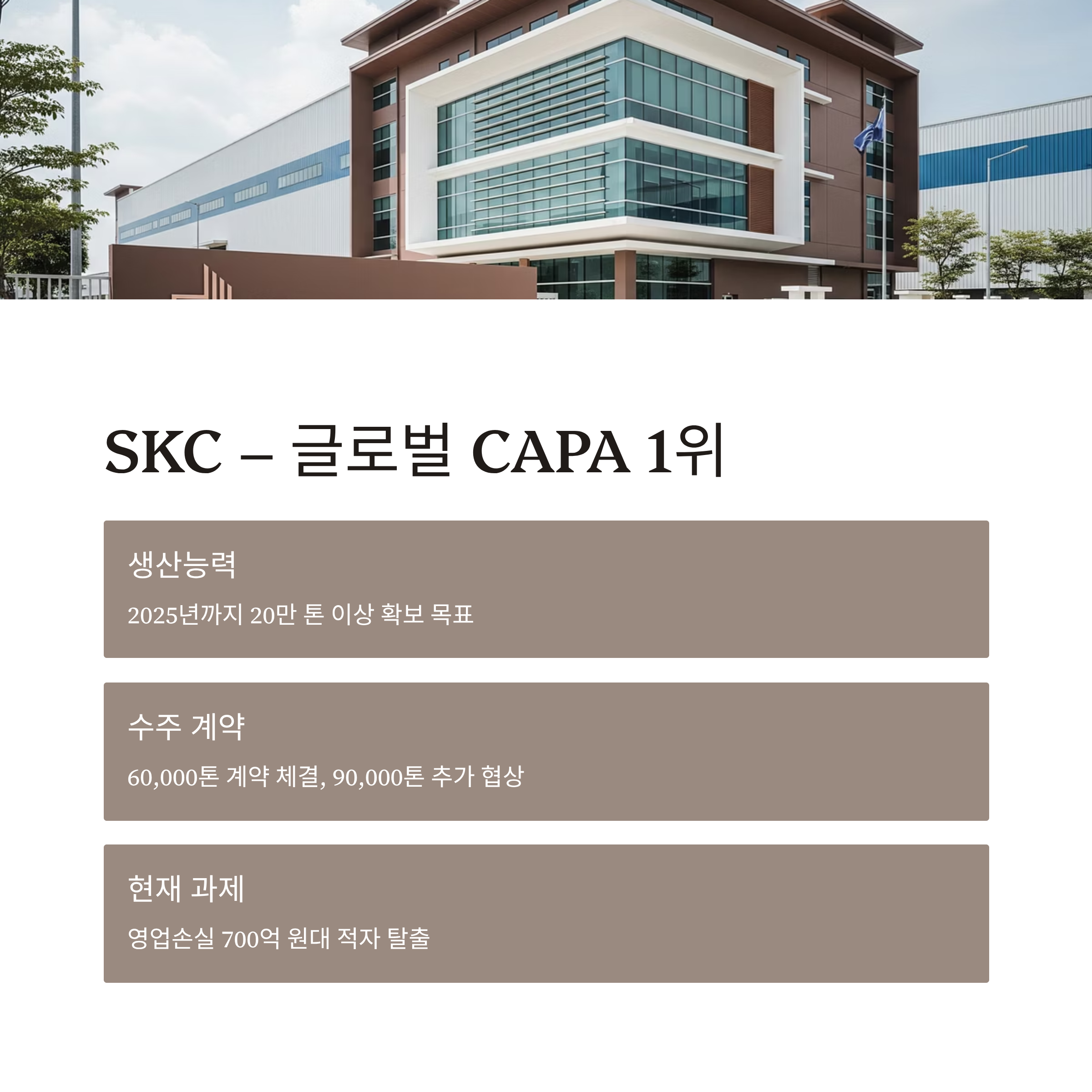 SKC – 글로벌 CAPA 1위, 적자 탈출이 최대 과제