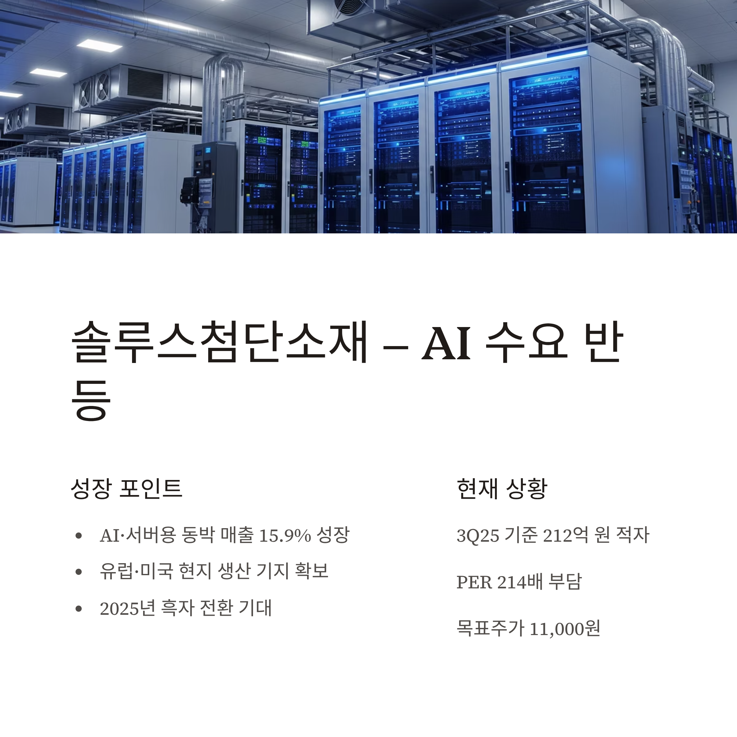 솔루스첨단소재 – AI 수요 타고 반등 조짐, 하지만 아직 적자