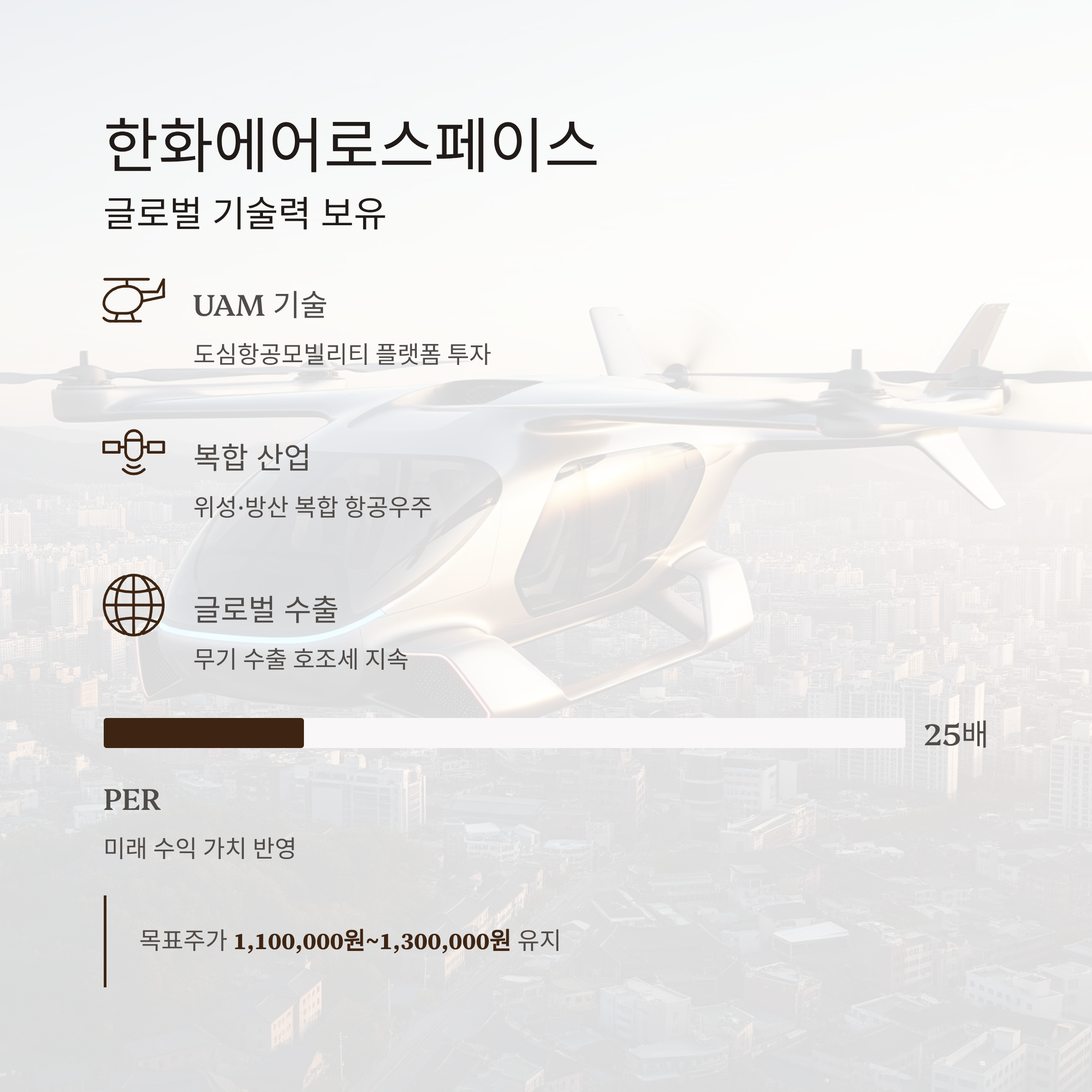 한화에어로스페이스 – 드론·UAM 글로벌 기술 보유, 방산 수혜 강화