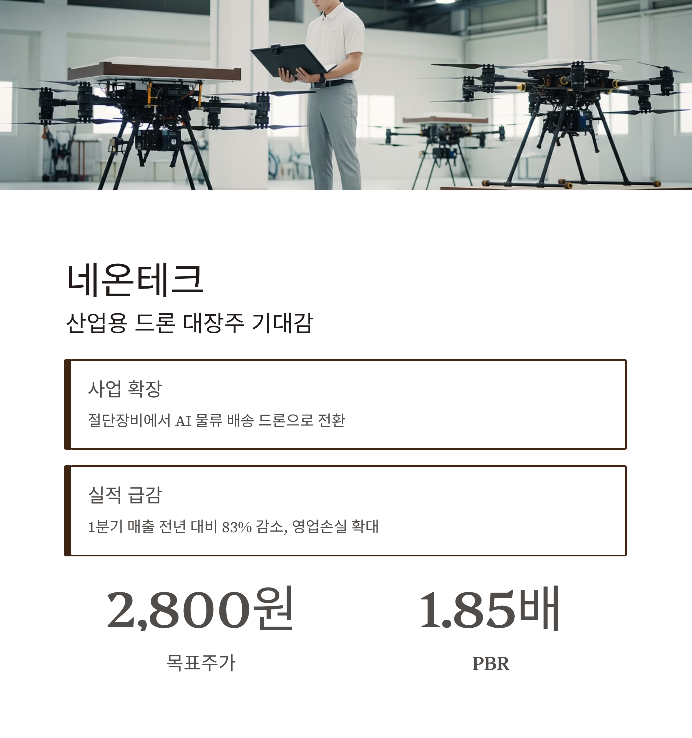 네온테크 – 산업용 드론 대장주 기대, 실적보단 기대감이 앞선다