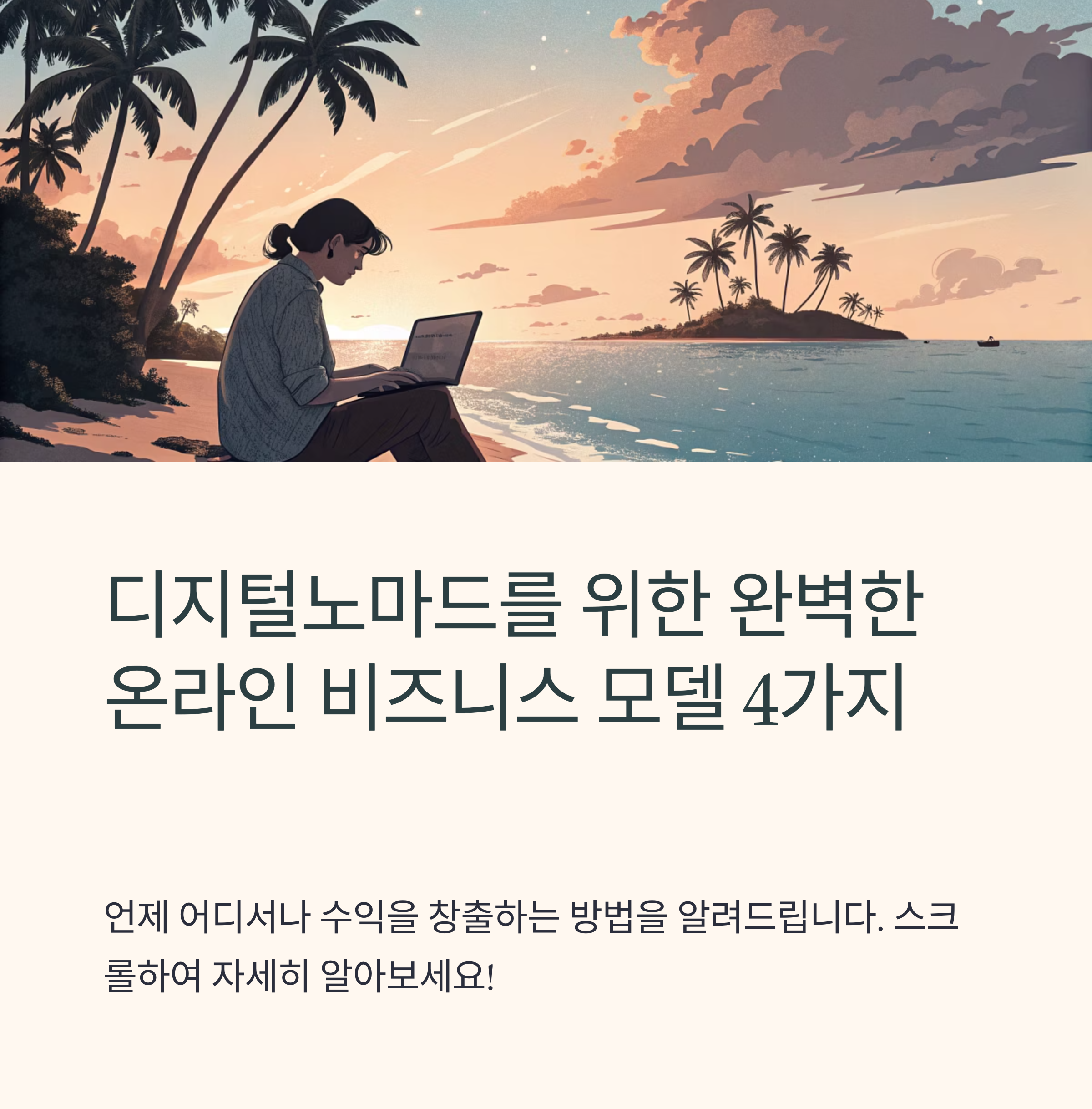 디지털노마드를 위한 온라인 판매 모델은 다양한 방식으로 접근할 수 있습니다. 드롭쉬핑, 위탁판매, 자사 쇼핑몰 운영, 디지털 제품 판매 모두 각각의 장점과 단점이 있지만, 모든 모델은 온라인에서 사업을 시작하는 데 적합한 모델들입니다. 가장 중요한 것은 자신에게 맞는 모델을 선택하고, 각 모델의 특성을 이해한 후 실행에 옮기는 것입니다.
