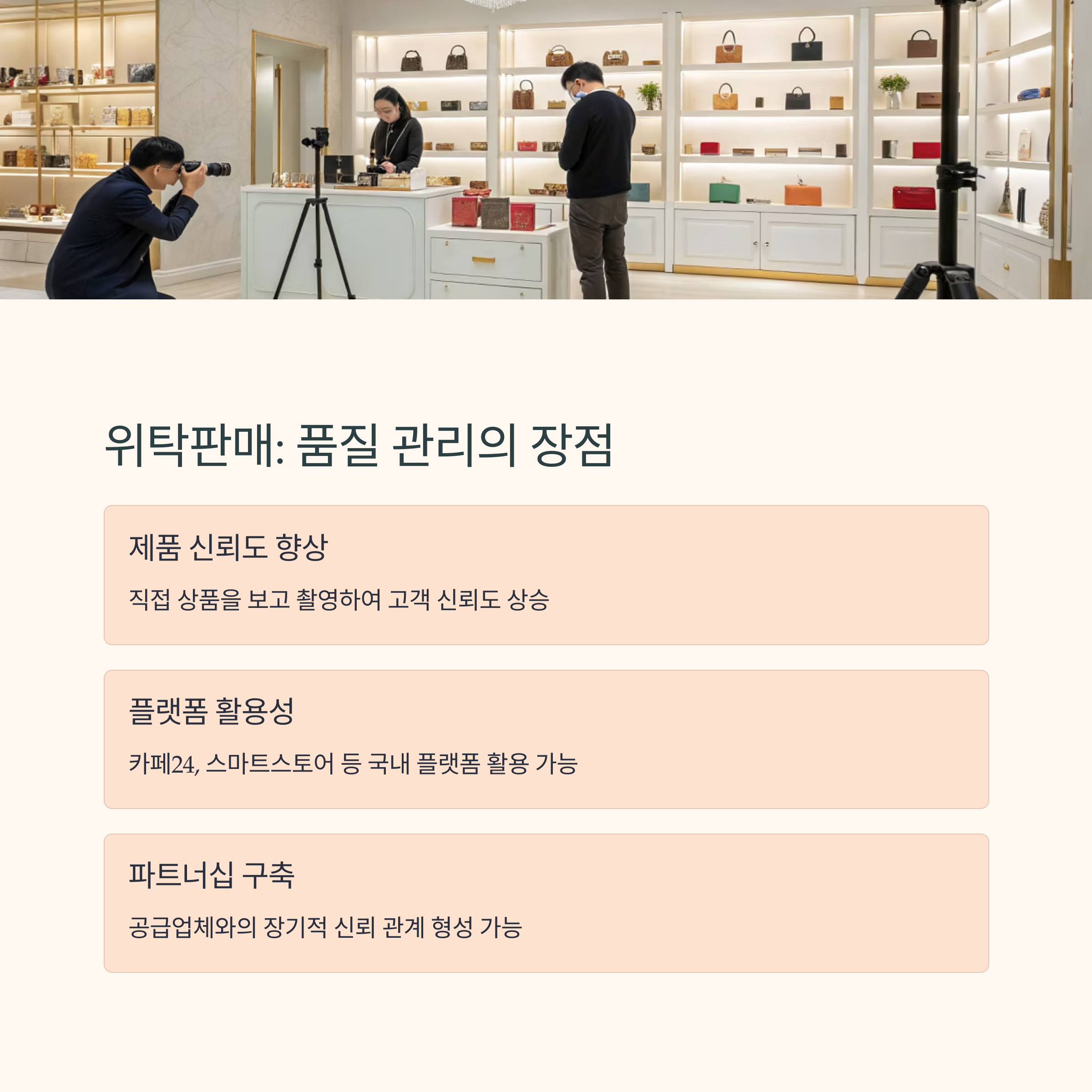 두 번째로 추천하는 모델은 위탁판매입니다. 위탁판매는 제품을 직접 구매하지 않고 판매 후에 제품을 공급업체로부터 배송받는 방식입니다. 이 모델은 드롭쉬핑보다는 소액의 초기 투자가 필요하지만, 비교적 낮은 리스크로 시작할 수 있습니다. 위탁판매 제품은 품질을 직접 확인할 수 있으며, 제품의 특성에 맞게 마케팅 전략을 세울 수 있어 상품에 대한 자신감을 얻을 수 있습니다.
