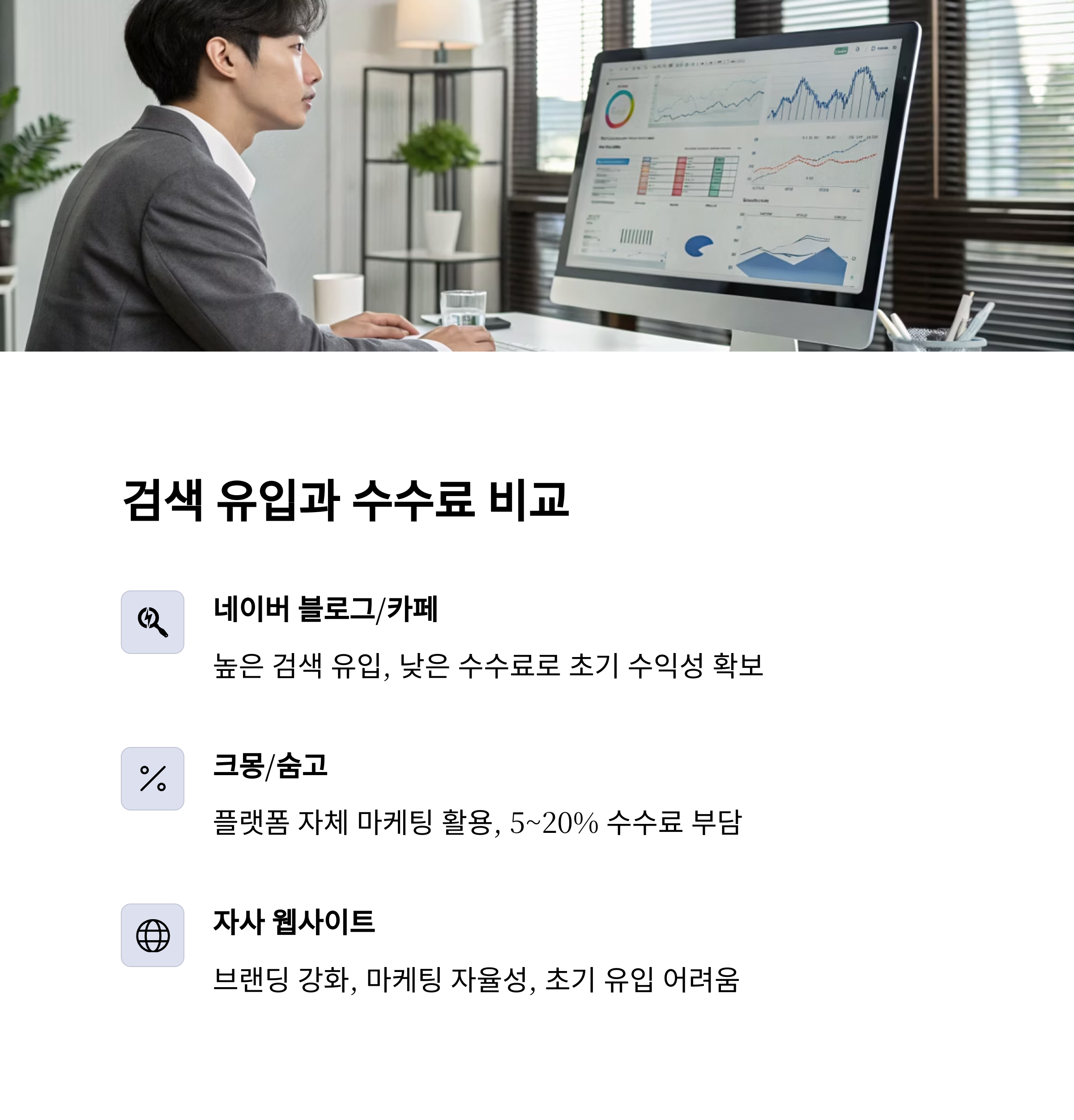 플랫폼 선택은 단순히 수수료 문제만이 아닙니다. 노출 구조, 검색 최적화, 리뷰 신뢰도 등 고객의 구매 결정 과정에 직접 영향을 줍니다. 처음 시작할 때는 한두 곳에 집중해 운영 경험을 쌓고, 이후 콘텐츠 유형에 따라 멀티 채널 전략으로 확장하는 것이 좋습니다.