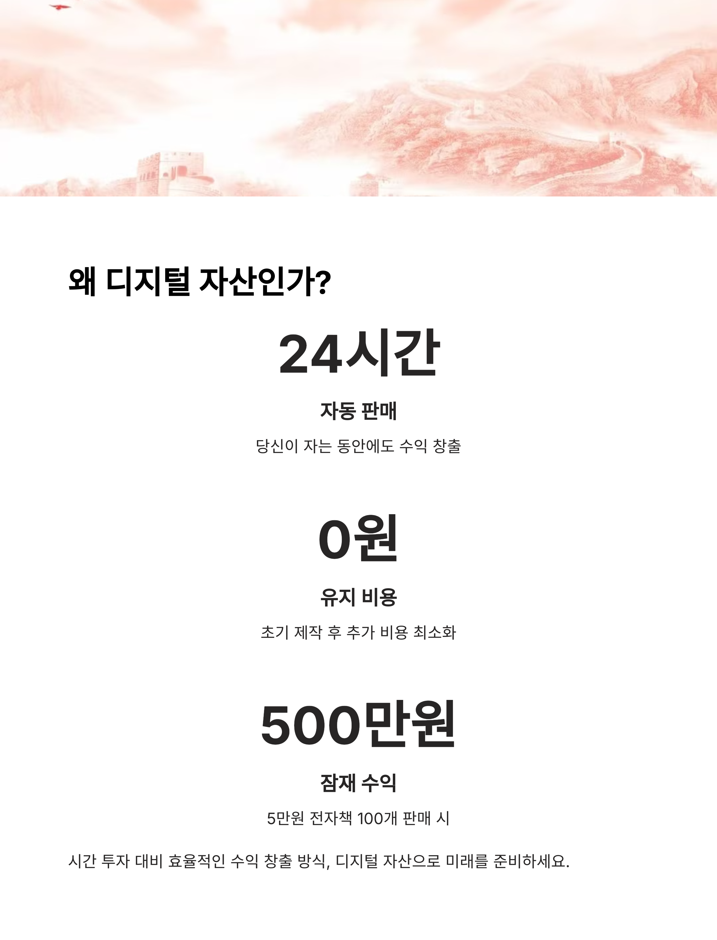 | 디지털 자산 | 반복 제작 없이도 계속 유입과 수익을 만들어주는 콘텐츠 기반 구조 |