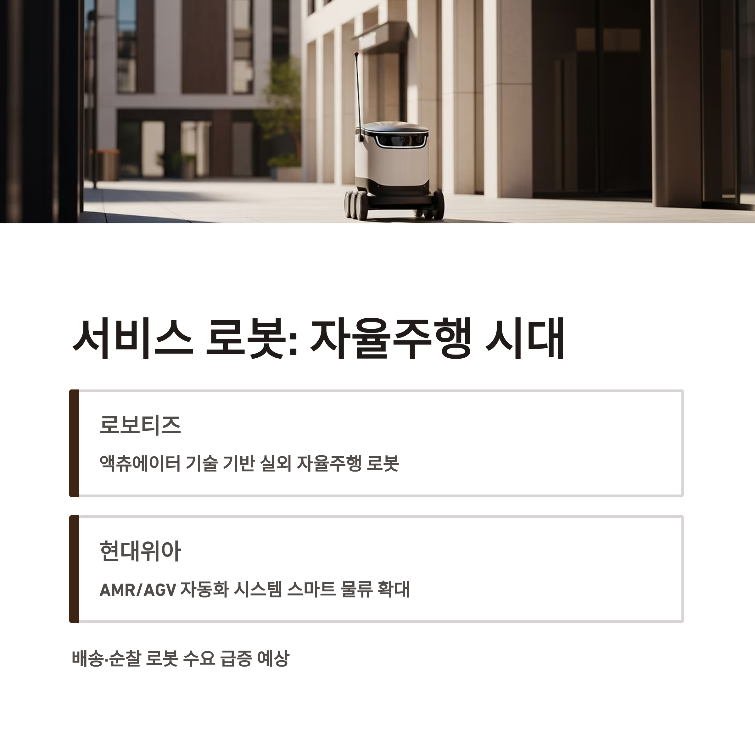 서비스 로봇 수혜주: 실외 자율주행·물류 자동화 핵심