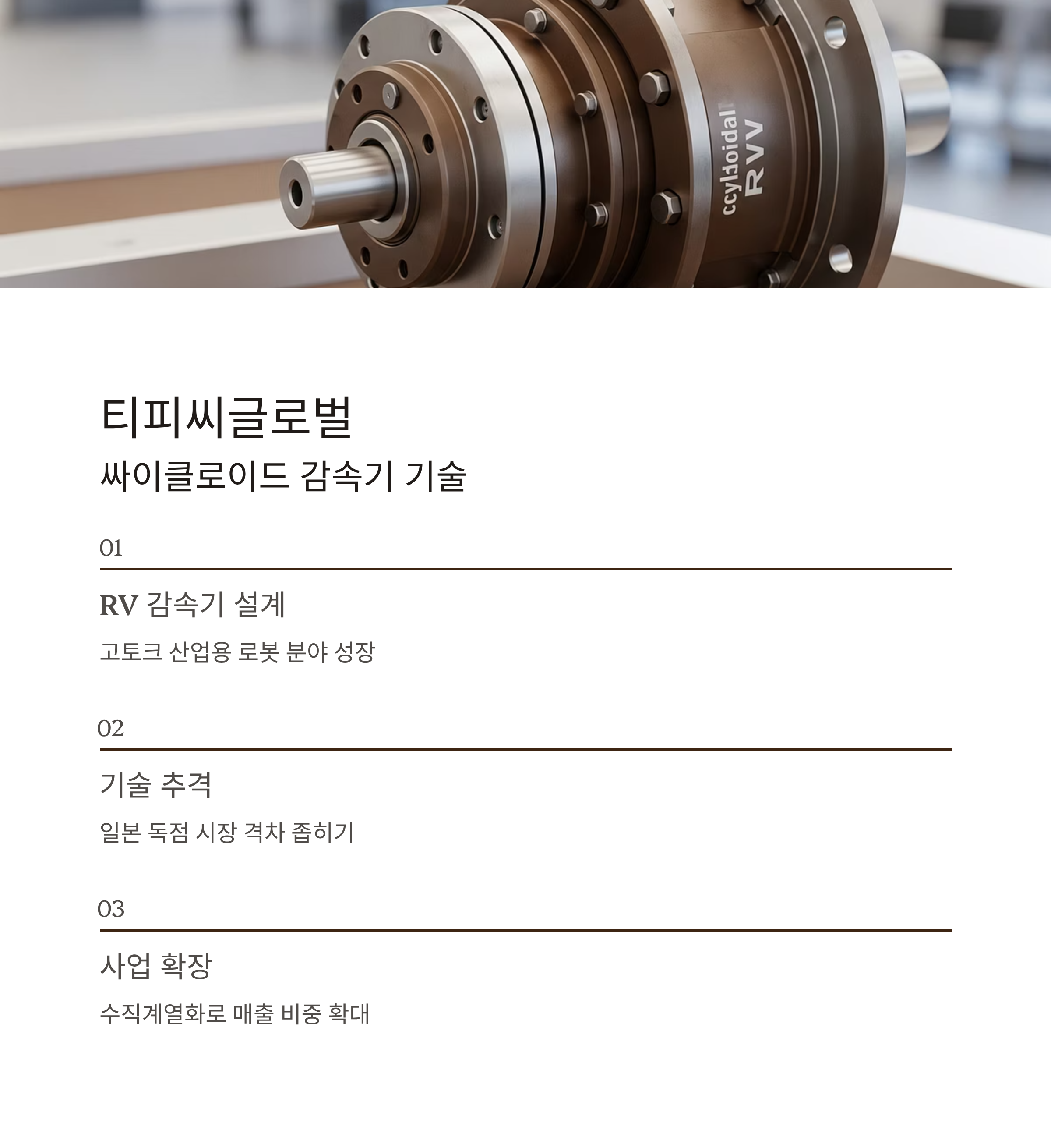 티피씨글로벌: 싸이클로이드 감속기로 기술 격차 좁힌다