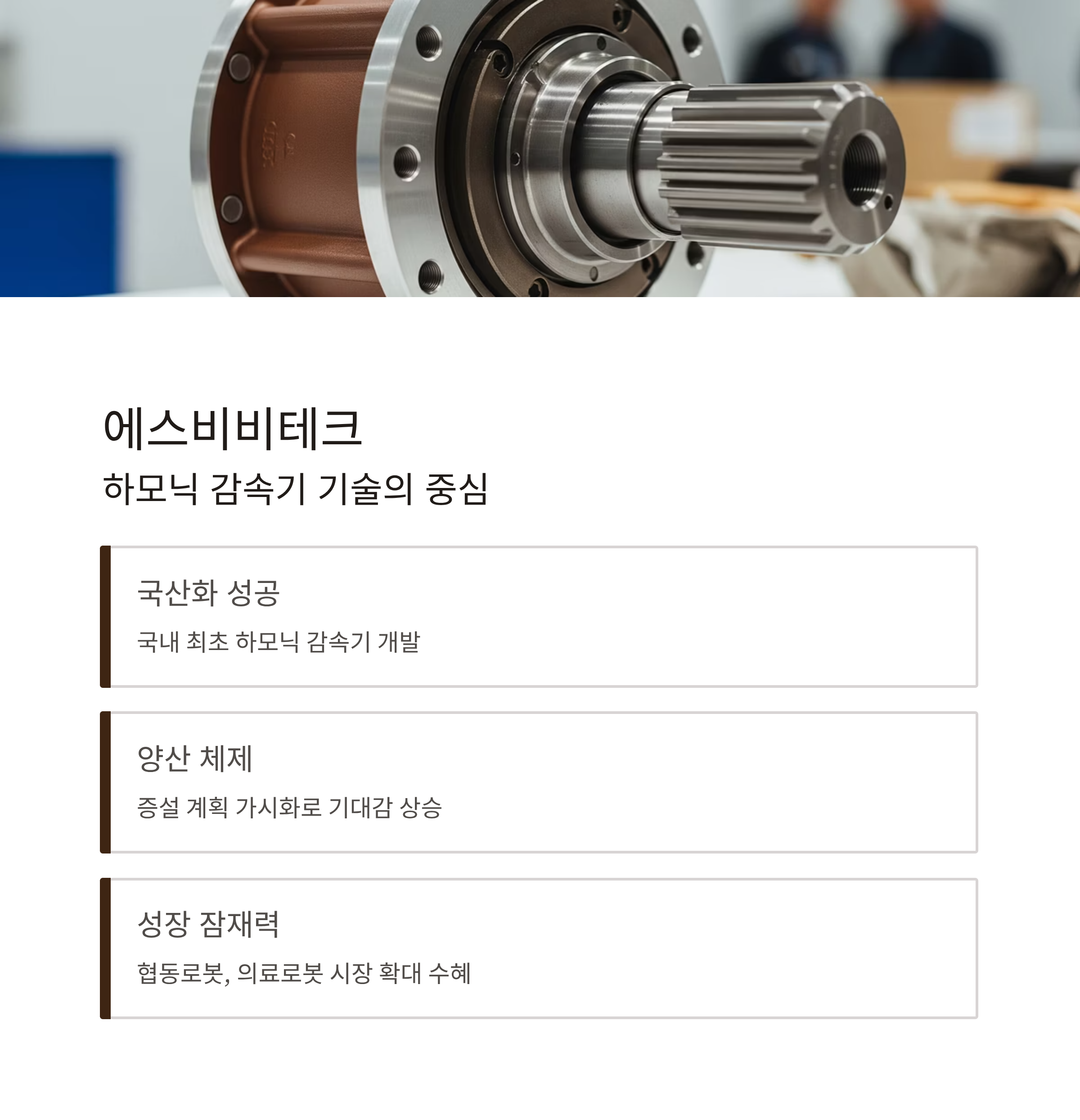 에스비비테크: 국내 하모닉 감속기 기술의 중심