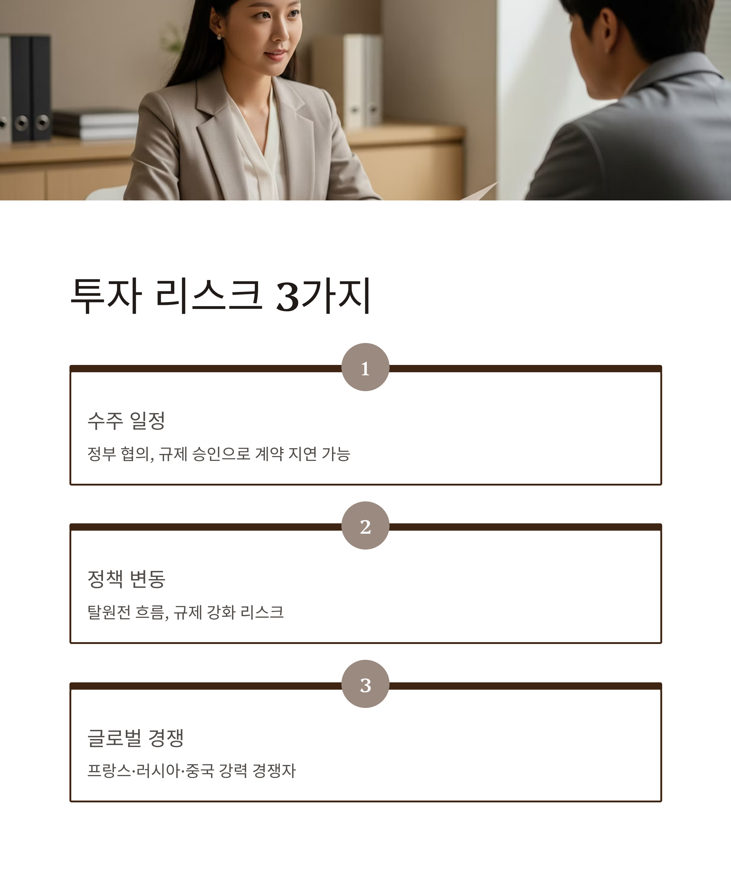 계약 체결까지 오랜 시간이 걸릴 수 있어요. - 정책/환경 리스크