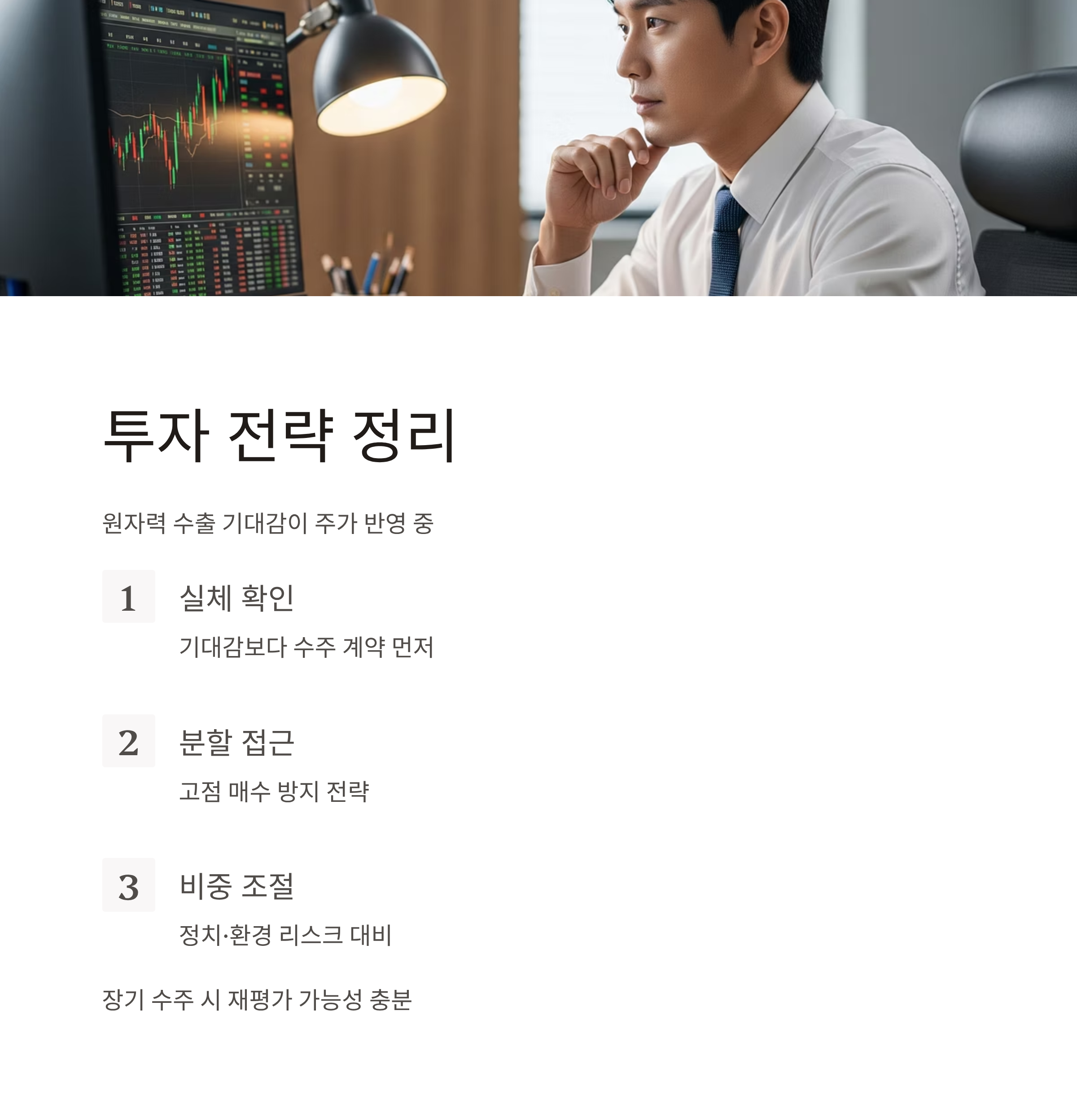 - 투자 포인트: 원전 산업의 ‘두뇌’ 역할, 기술 기반 장기 수혜 가능성
