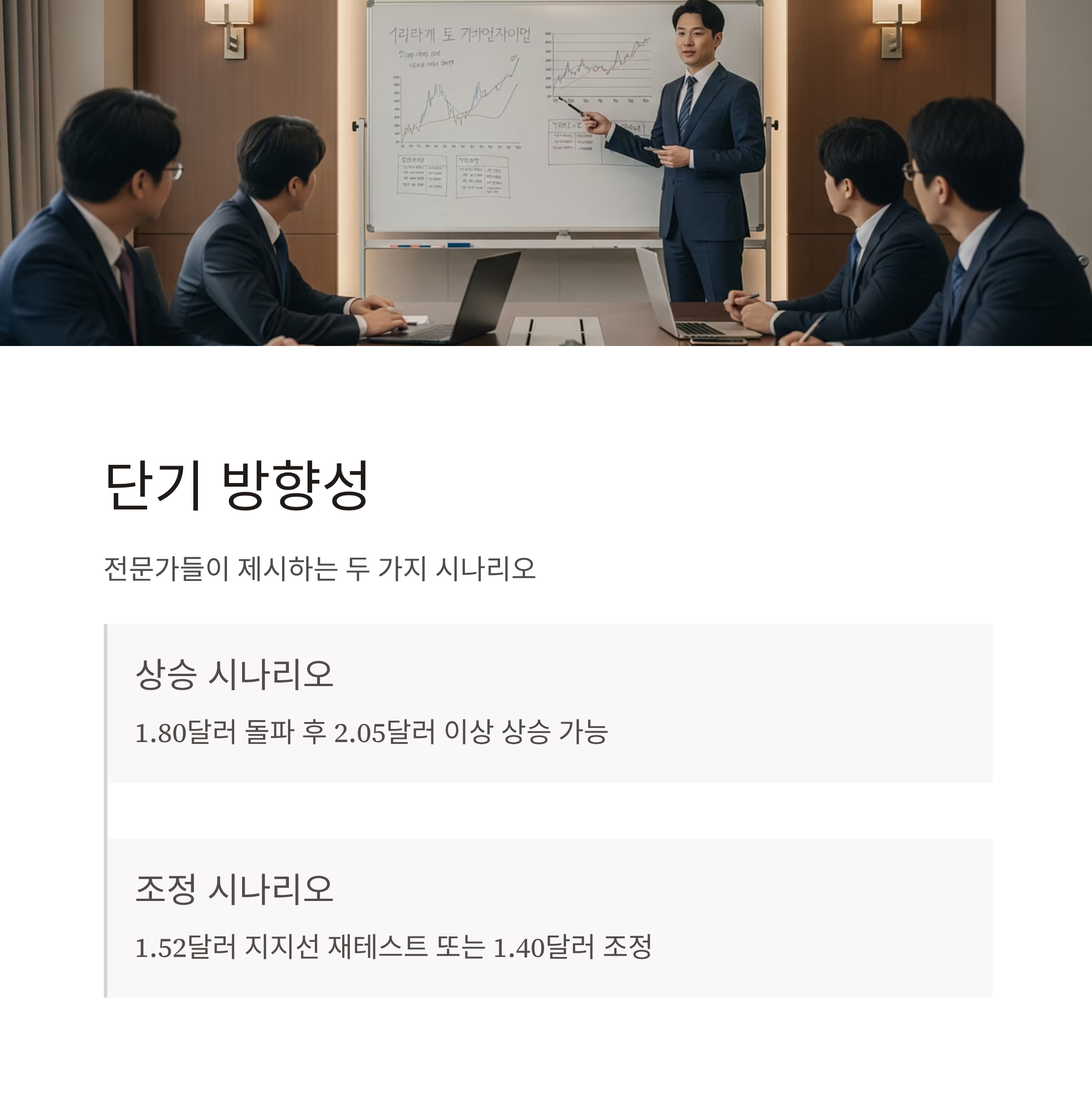 특히 1.75~1.80달러 구간 돌파 여부가 단기 상승세 지속의 분기점으로 평가됩니다. 반대로 1.52달러 선이 붕괴될 경우 하방 리스크가 커질 수 있습니다.