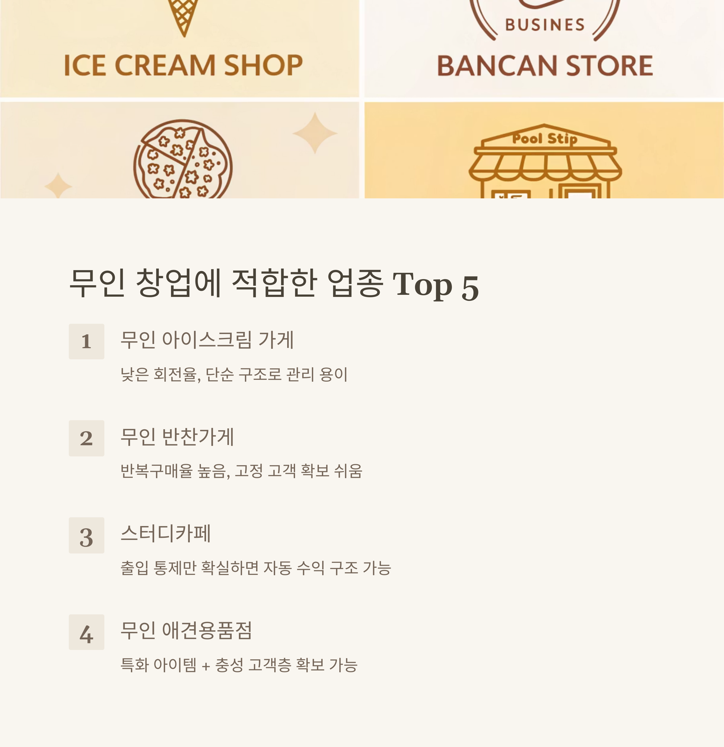 ✅ 무인 창업에 적합한 업종 Top 5