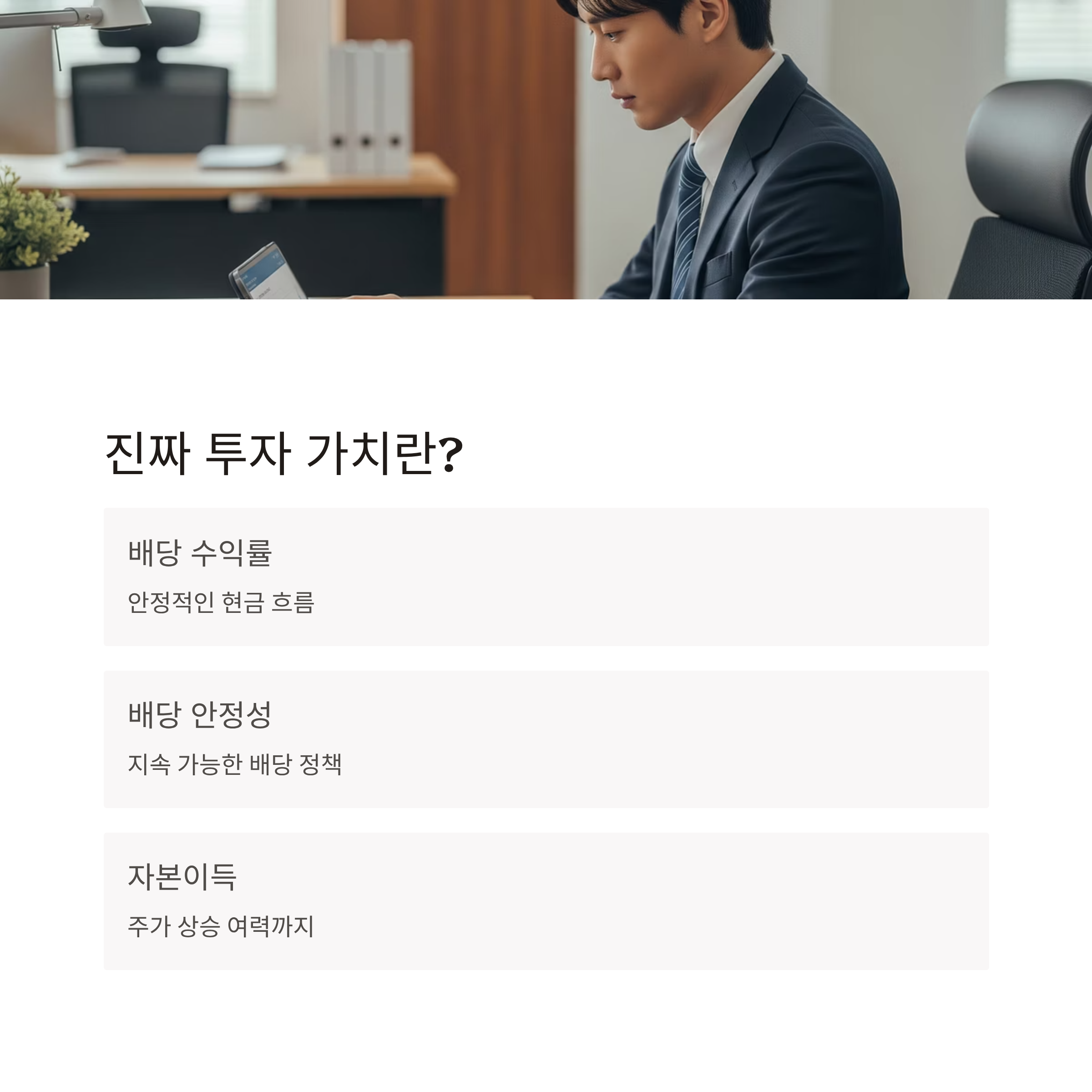 눈에 보이는 수익률보다 더 중요한 건, 배당이 유지되면서도 주가가 함께 오를 수 있는 실적 기반입니다.