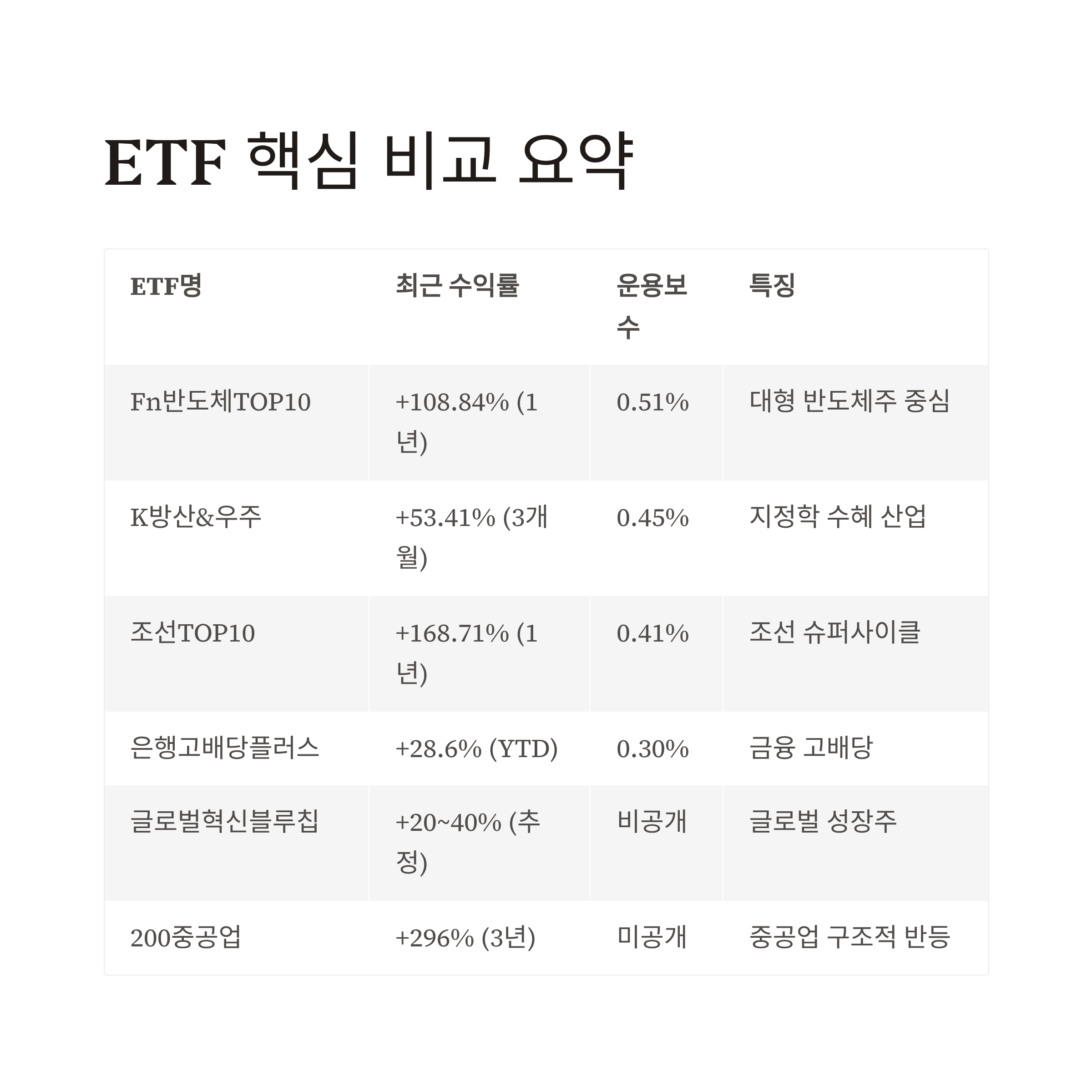 ETF 핵심 비교 요약
