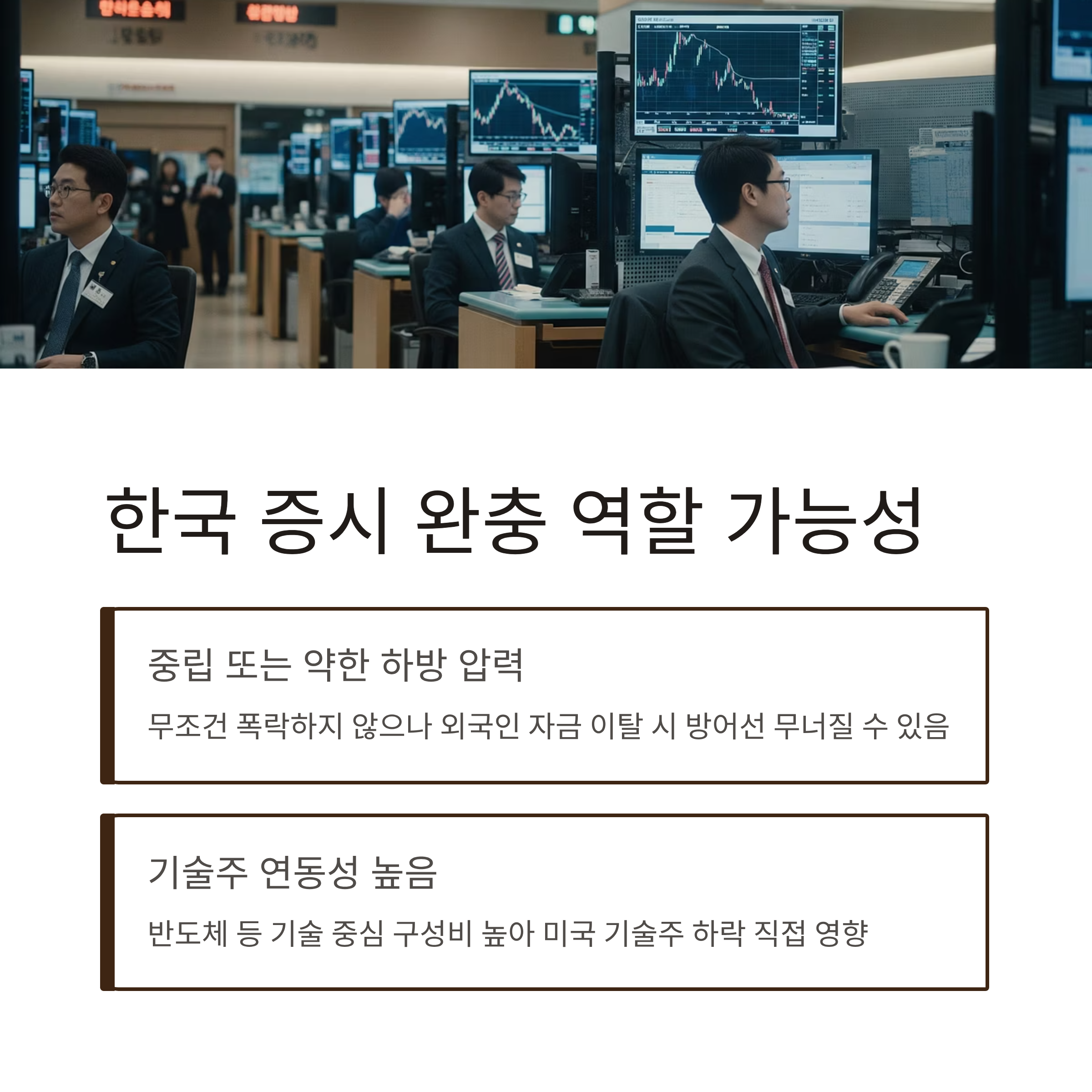 무조건 폭락하지는 않더라도, 글로벌 위험 회피 심리 속에서 외국인 자금 이탈이 늘어나면 한국 지수도 방어선이 무너질 수 있죠.